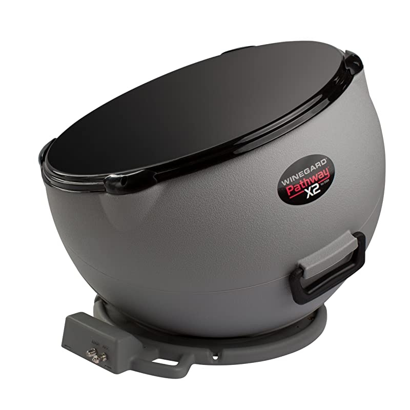 Style: Satellite TV Antenna and receiverDesigned exclusively for DISH Network satellite TV programming, the Pathway X2 antenna offers a whole new look at automatic satellite TV acquisition. Powered through the DISH receiver, the Pathway X2 requires no separate power cord. Simply activate the receiver through an existing DISH account or subscribe to a new Pay-As-You-Go programming package that doesn? t require any activation fees or 2 year agreements. A unique feature to the Pathway is the ability to point to either Western or Eastern arc satellite orbitals, offering the most programming available. The larger reflector size also provides superior signal performance compared to other automatic portable satellite systems. Lightweight yet rugged, the Pathway X2 antenna offers the fastest and easiest set up. Features 2 coax inputs to allow for multiple receiver hook-up, an easy grip carry handle, and a security eyelet molded into the base so the antenna can be locked up. Includes one 25? coax cable. Stores to 15? x 21?. Weight 16 lbs. Compatible with Carryout tripod mount (sold separately). Not compatible with Carryout ladder mount. Made in the U.