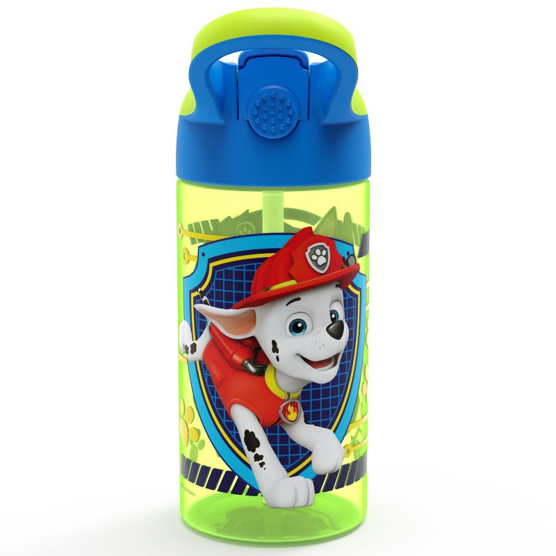 Keep water close at hand with this Trolls water bottle! It has a built-in carrying loop so you can take it anywhere, and an easy-open, push-button lid that won't leak when it's closed. Everything is made of durable, BPA-free materials, with a silicone spout for drinking comfort. This bottle holds 17.5 ounces, fits in most car cup holders, and helps encourage healthy hydration with fun and exciting character art!