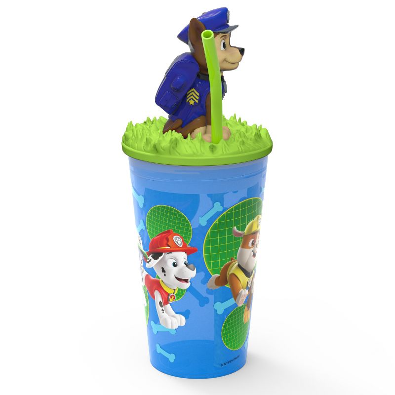 This Paw Patrol tumbler uses the buddy system to keep kids hydrated! A screw-on lid prevents splashes and spills, while a durable straw keeps water accessible. With fully wrapped art and Chase sculpted in 360 degrees, this tumbler is fun from any angle. It's easy to keep close because it fits in car cup holders and the 15oz tumbler is small enough for kids to hold. Everything is made of durable plastic and completely BPA free. Hand wash, do not microwave.