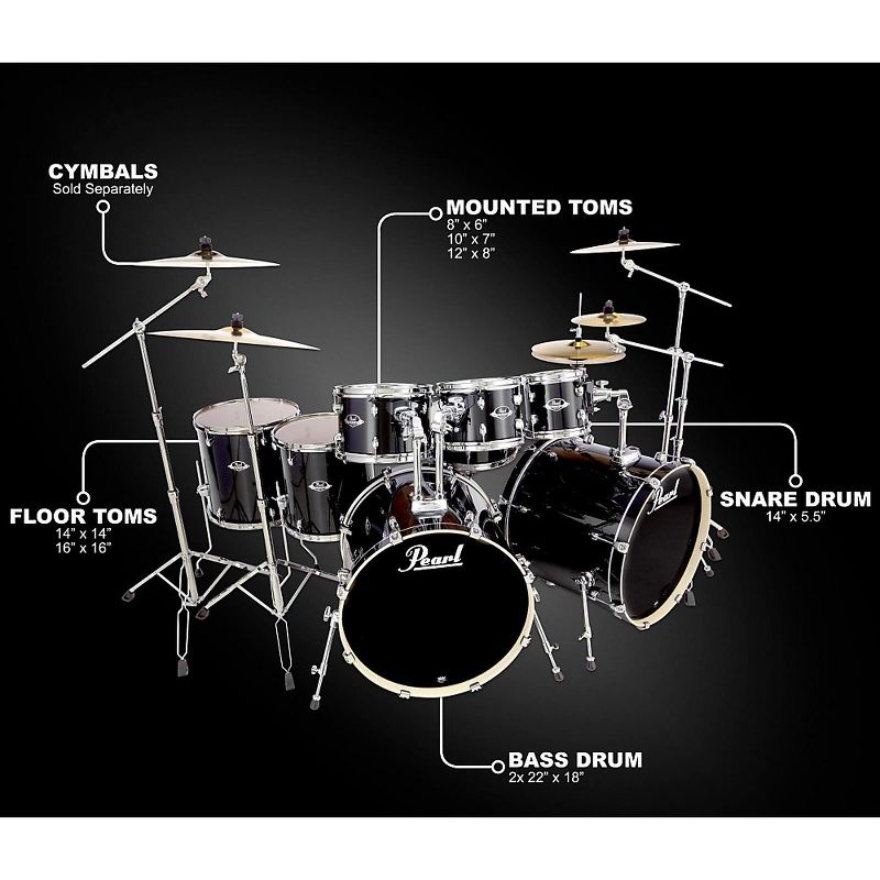 Like a legendary group or solo act whose mystique only grew during inactivity, the Export Series from Pearl is back and ready to help take act on the road. Unlike that aged group or musician, Pearl Export has only improved with age. Offering new hardware features, SST shell construction and suspended mounts, these Export drums are better than remember them. The 6-ply poplar and mahogany shells churn out balanced attack and full tone, while the high-end hardware will make trip down memory lane a pleasant one.Pearl's updated Export Series offers a sonically advanced recipe of strategically arranged plies of premium wood to maximize frequency response of every component. As with all Pearl drums, each shell is formed from our legendary SST construction process that uses extreme heat, Precision-cut scarf joints, proprietary Acoustiglue and over 1000lb. of hydraulic pressure to create the ultimate acoustic air chamber.Further emphasizing Pearl's "sound first" philosophy are the new lugs specifically designed for Export with sound-enhancement in mind. Designed for minimal shell interaction, they have a small footprint and low-mass for maximum resonance and sustain. Their bold look is modern but with a nod to lugs from Pearl's past.Export rack toms are equipped with Pearl's new Opti-Loc Mounting System that features a triangular design with two tension rod attachment points and another through one of the drum's two air vents. Rubber isolators at all connection points allow the drums to vibrate freely for maximum sustain and resonance while providing absolute and wobble-free performance.This Export double-bass kit includes an all-inclusive hardware pack with three BC830 boom stands, two P930 kick pedals and more. Cymbals sold separately.