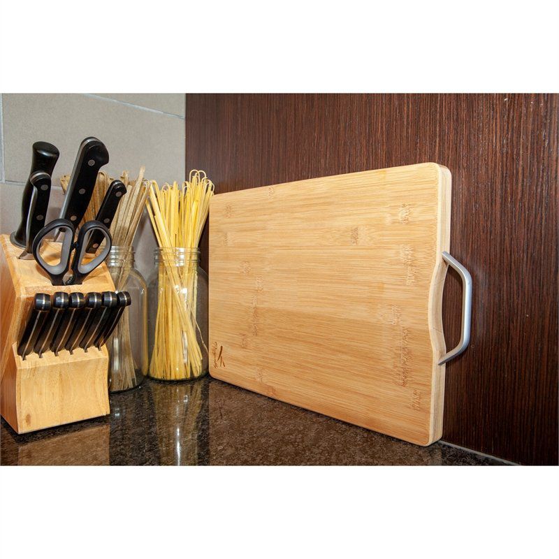The horizontal-grain texture on this chopping board helps you hold vegetables and meat in place so you can slice precisely; this helps you make even cuts of food so it can cook or grill more evenly.Features : 100% Organic Natural Bamboo; Handle for easy storage and extra grip; Knife friendly; 1 year limited warranty; For residential use; Horizontal-grain texture to help hold veggies, meats, breads and cheeses in place; Easy to clean. Specifications : Product Dimensions : 11.61"" H x 15.75"" W x 1.18"" D.