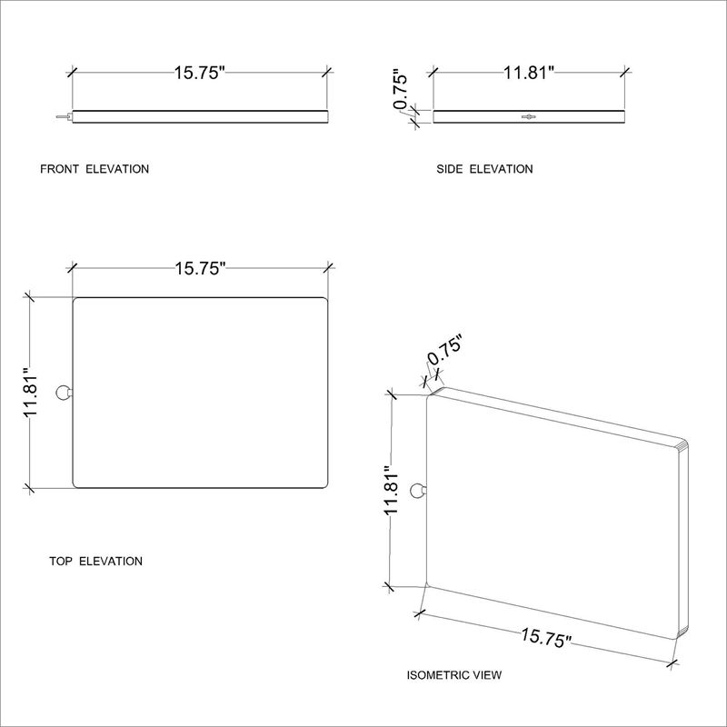 Dimensions (Overall): 11.81 inches (L), .75 inches (H) x 15.75 inches (W)