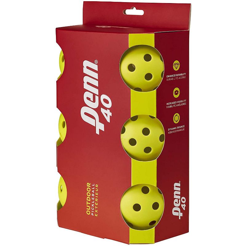 The Penn 40 outdoor ball is perfect for recreational club play, for coaches providing instruction and also for some tournament play when a softer ball is required. New to the Penn's range of high quality performance products across multiple sports, the Penn 40, which is USAPA approved, offers enhanced durability for all levels of pickleball play and also features increased visibility for all lighting conditions. The Penn 40 outdoor ball also features a dynamic bounce for ultimate performance and playability each time you step on court. Great quality balls from a brand you can trust. High quality, high control level, and a brand name you can trust. The Penn 40 hole pickleball is the go-to choice for all levels of players. The Penn 40 offers players a softer, more forgiving ball without sacrificing durability. The ball also has a high visibility level with its vibrant color and dirt-resistant material. Need a softer ball? This is an excellent option for recreational or club players, and tournaments that would like to opt for a gentler ball.
