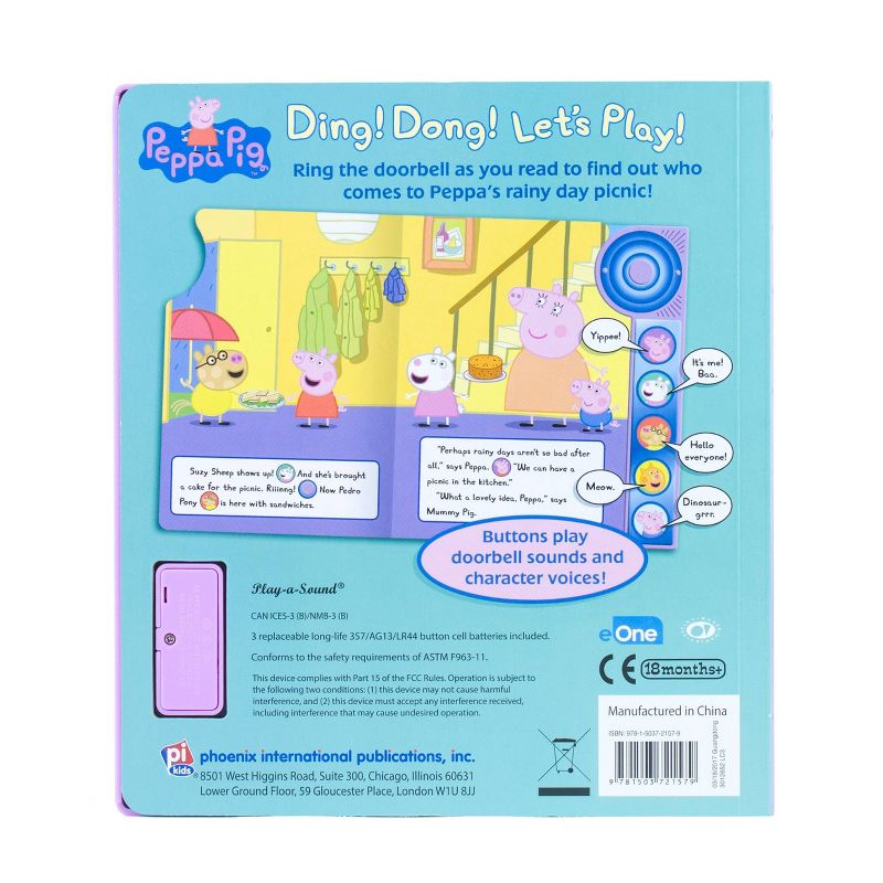 Ring the doorbell and find out who comes to Peppa Pig's rainy day picnic! 5 additional buttons bring the story to life with fun sounds, and the voice of Peppa and her friends! Matching words with pictures and sounds enhances reading comprehension, and engages young readers at story time.| Estimated Delivery | Cost | Tracking | Courier |