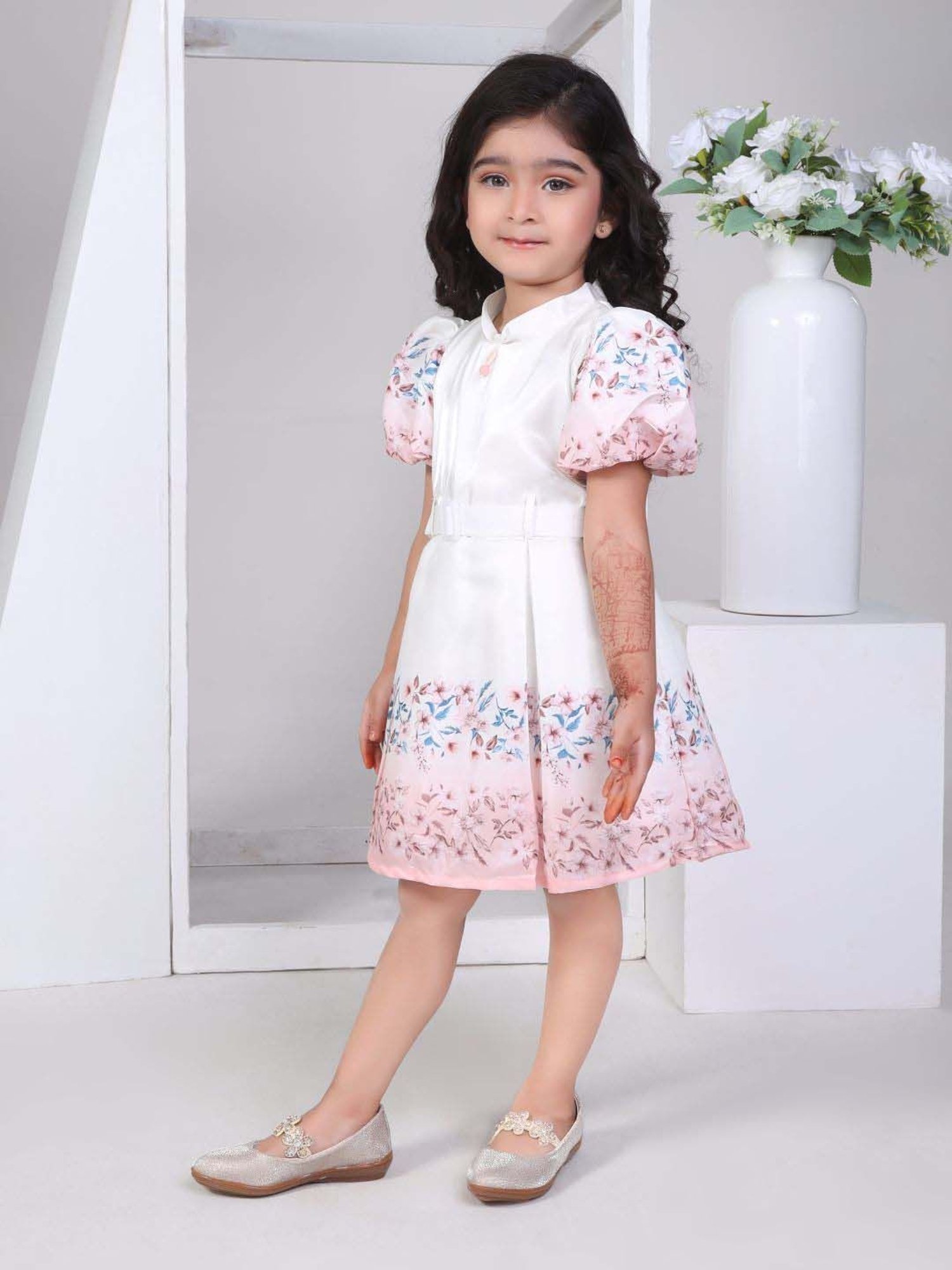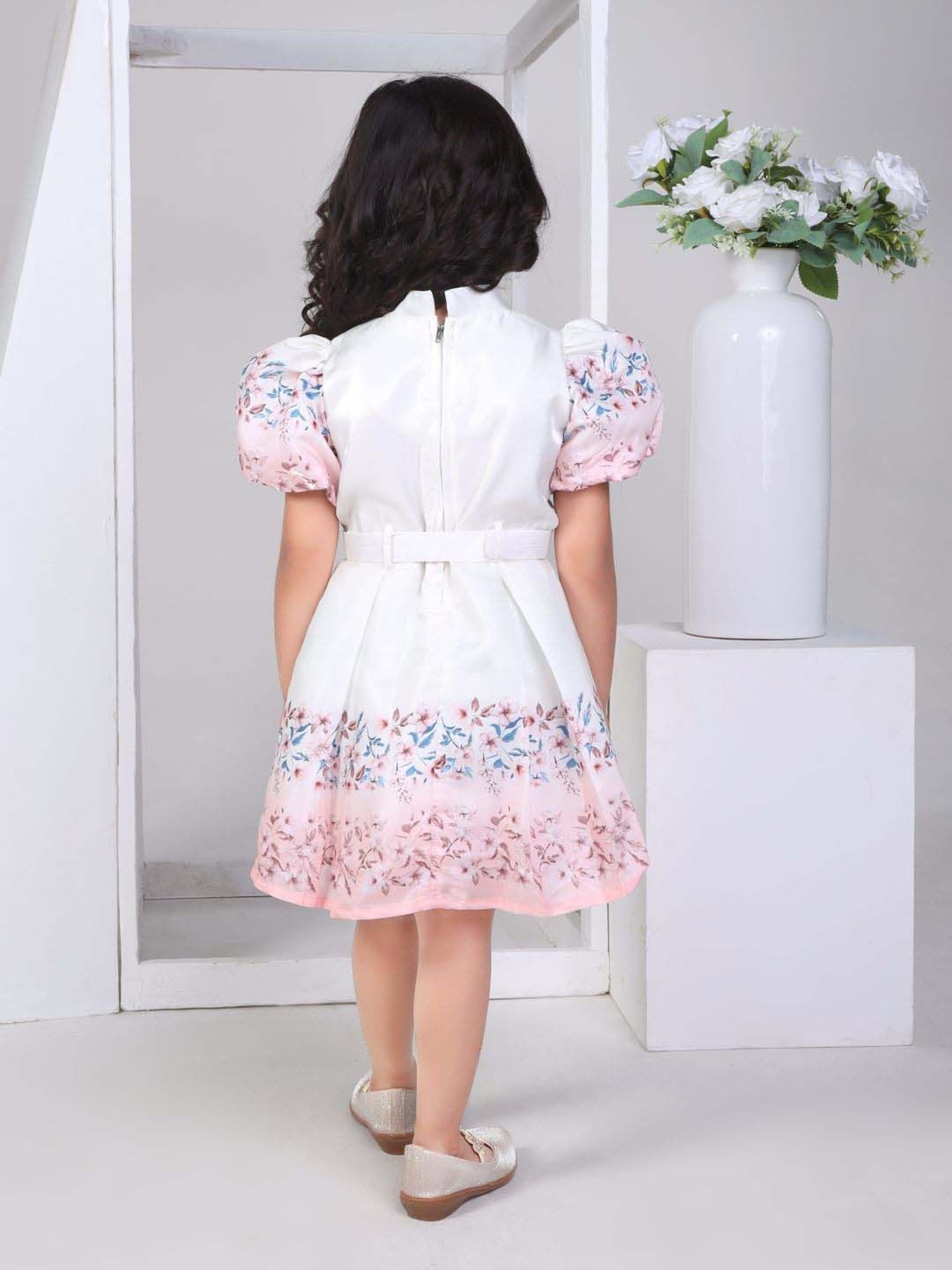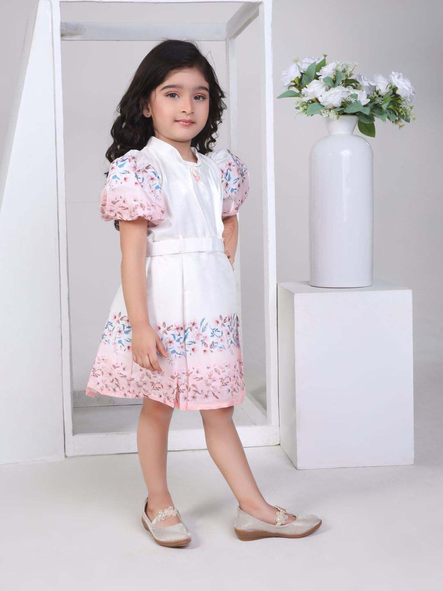 Your little gender is sure to tread in standout style wearing this white regular dress from Peppermint. Crafted using premium quality polyester fabric, it will be very soft to the skin. The collared neckline elevates its design. Exuding short sleeves, it is sure to fetch you compliments from all. The floral print makes it a bewitching choice.