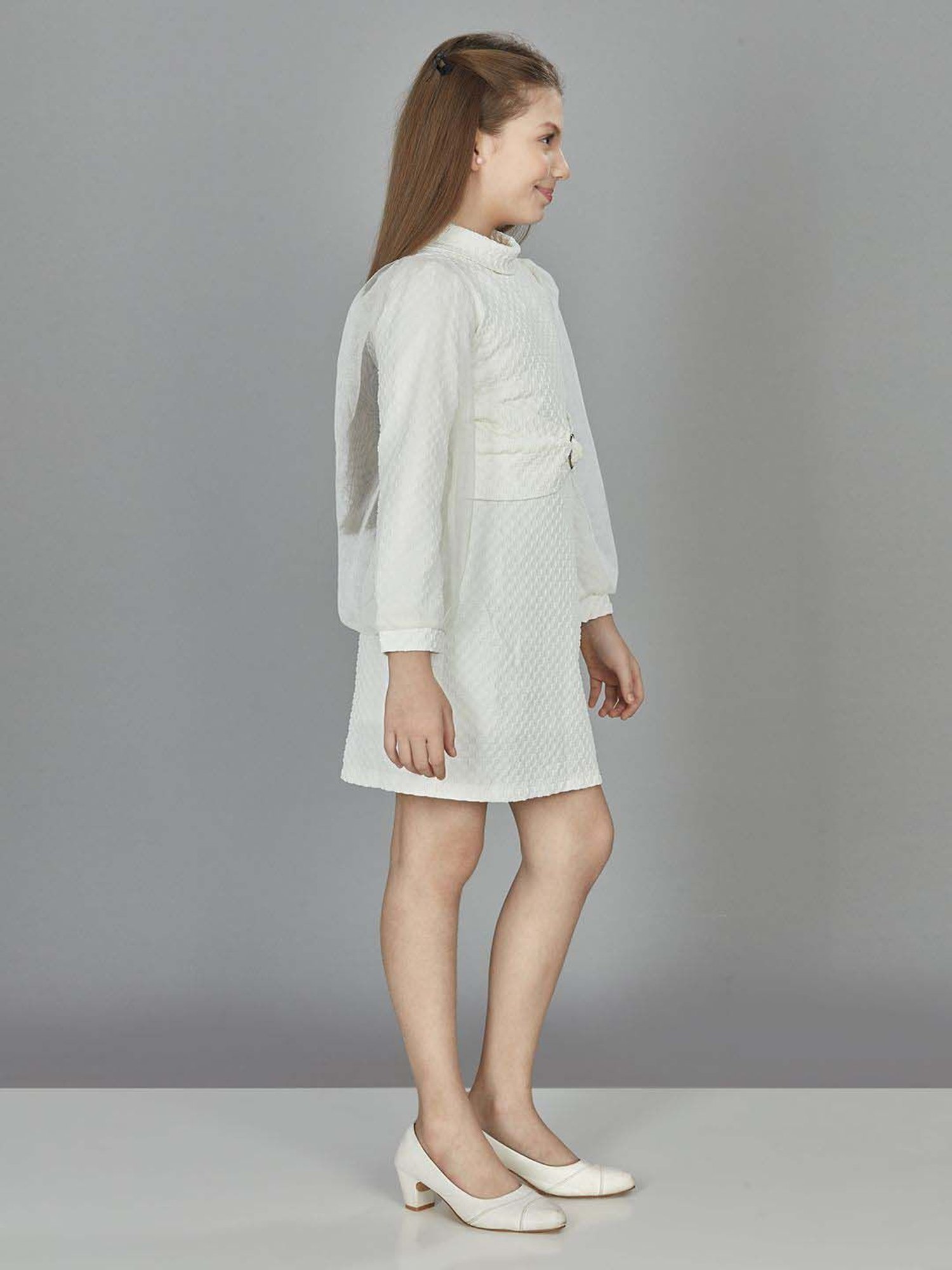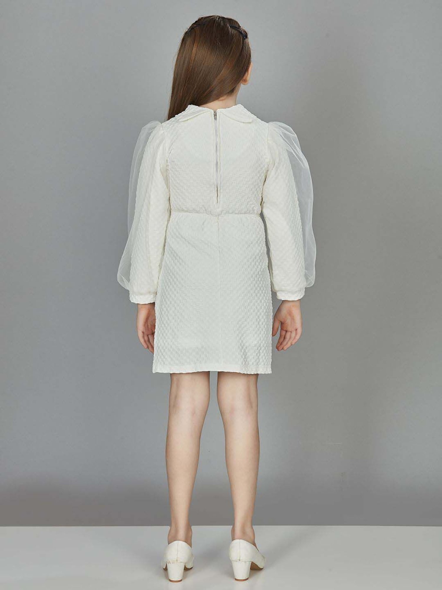 Reinvigorate your little gender's wardrobe with this white straight dress from Peppermint. Crafted using premium quality polyester fabric, it will be very soft to the skin. The mandarin collar augments its design. Exuding full sleeves, it is sure to fetch you compliments from all. The textured pattern makes it a wardrobe classic.