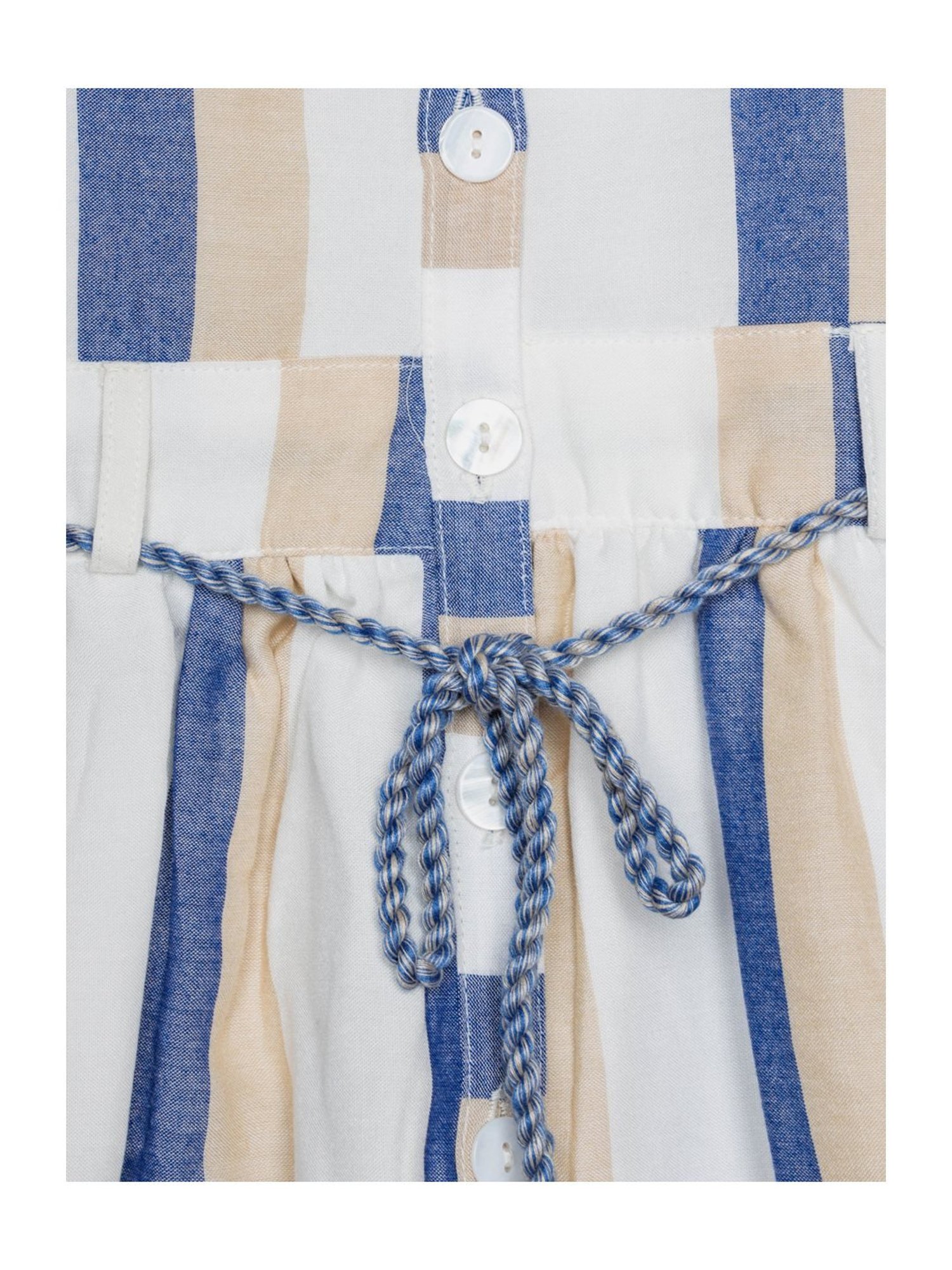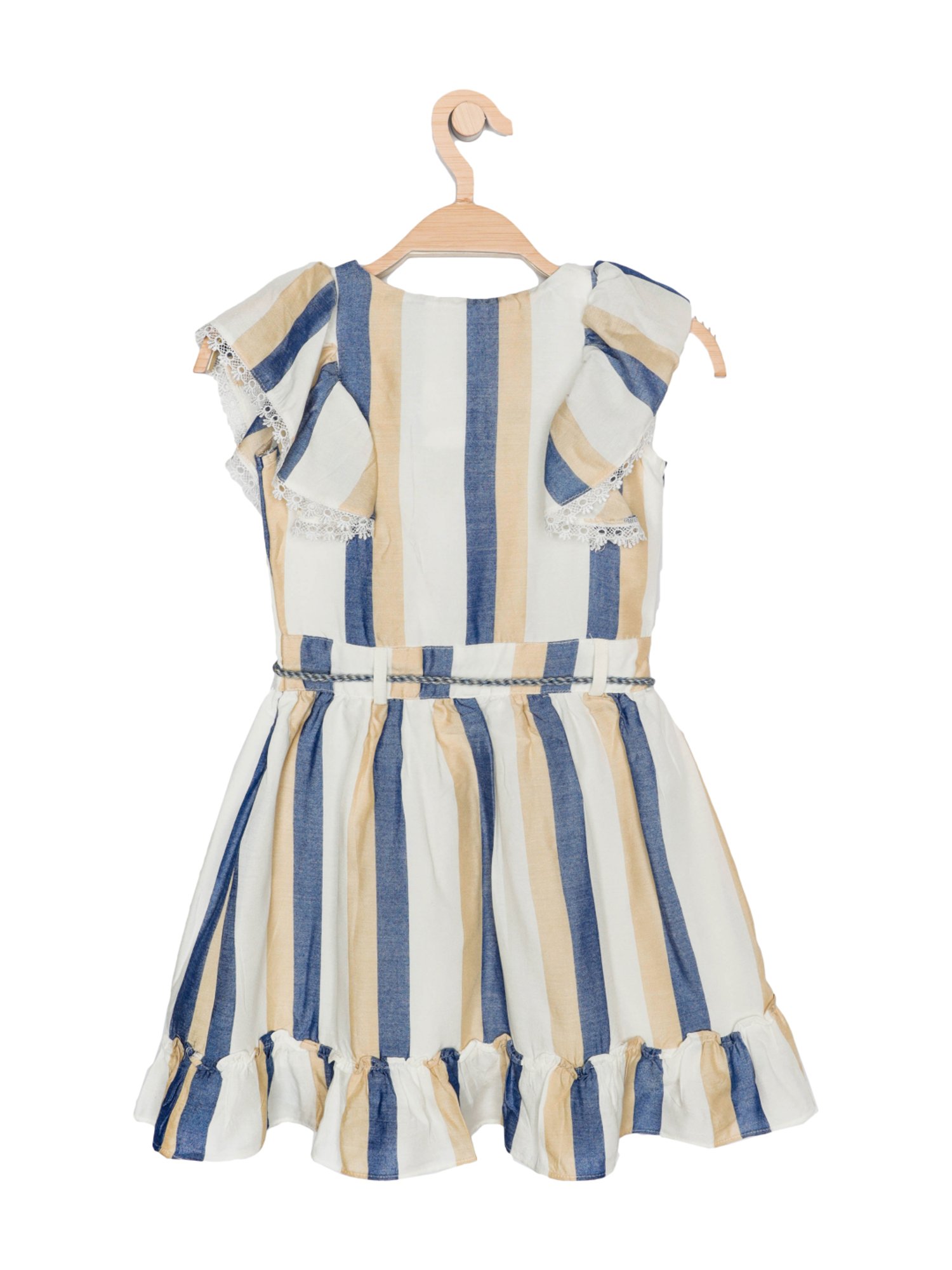 A brilliant amalgamation of style and comfort, this blue dress and rope belt from Peppermint Kids will be an apt inclusion to your little heart's wardrobe. Tailored to sartorial perfection from premium quality cotton fabric, it assures a soft and soothing touch against the skin. The round neck adds to its appeal. Exuding short sleeves, it is sure to fetch your dear compliments from all. It emanates a striped pattern which makes it a unique choice. To complete the look, your dear can team it with a pair of sunglasses.