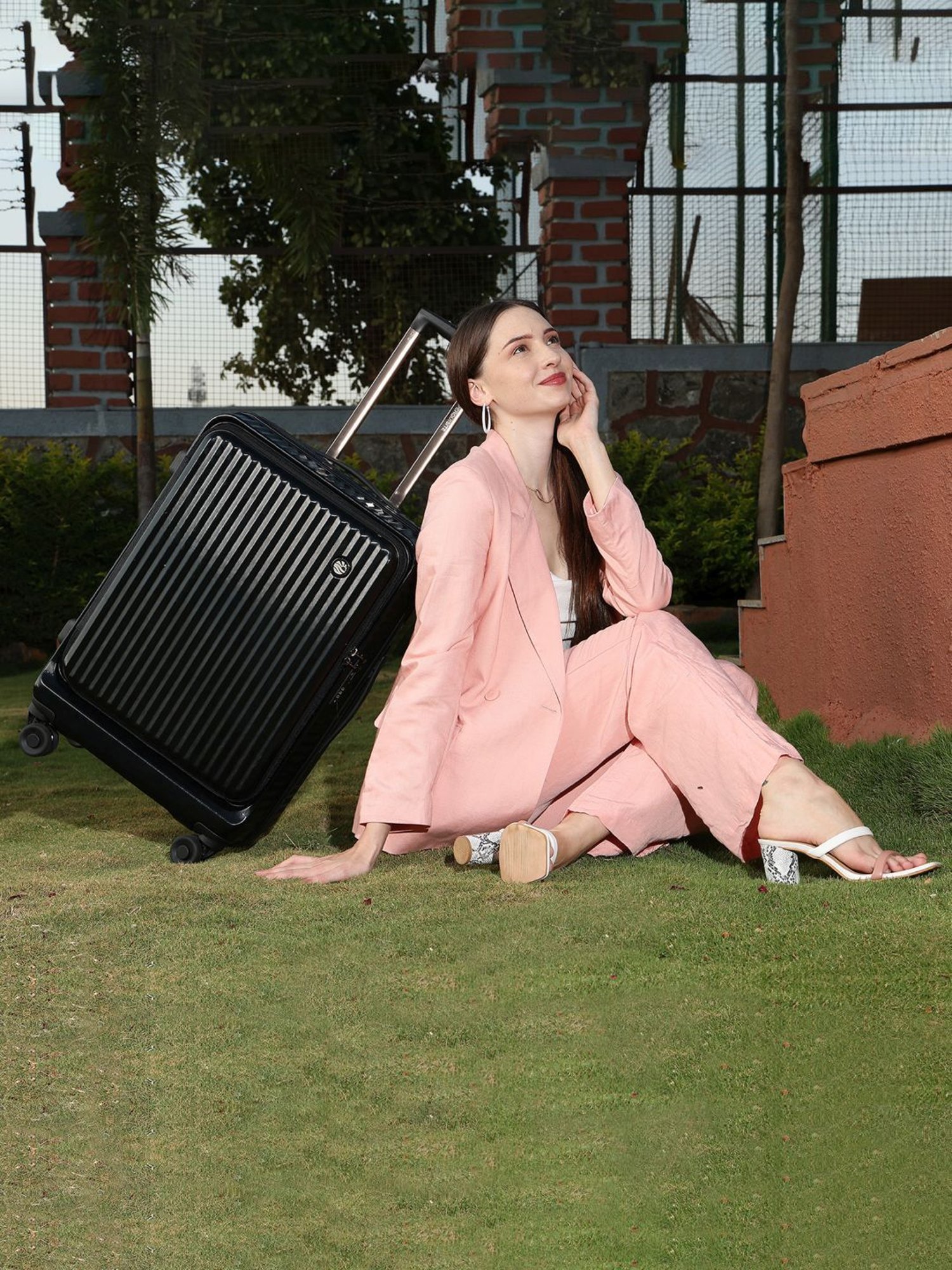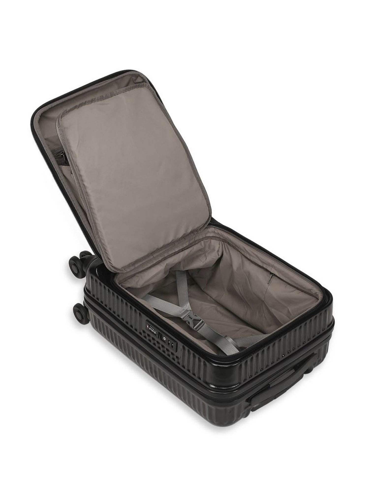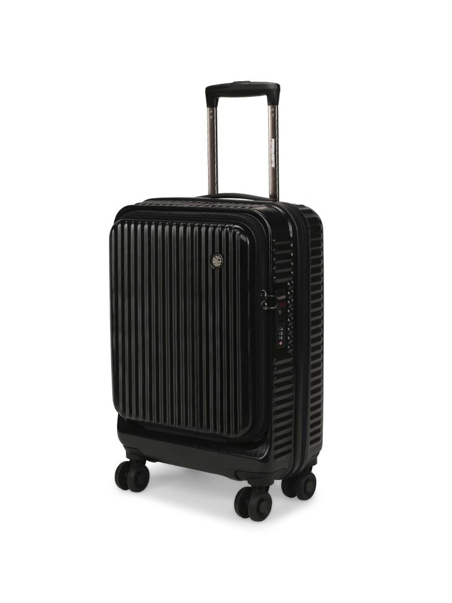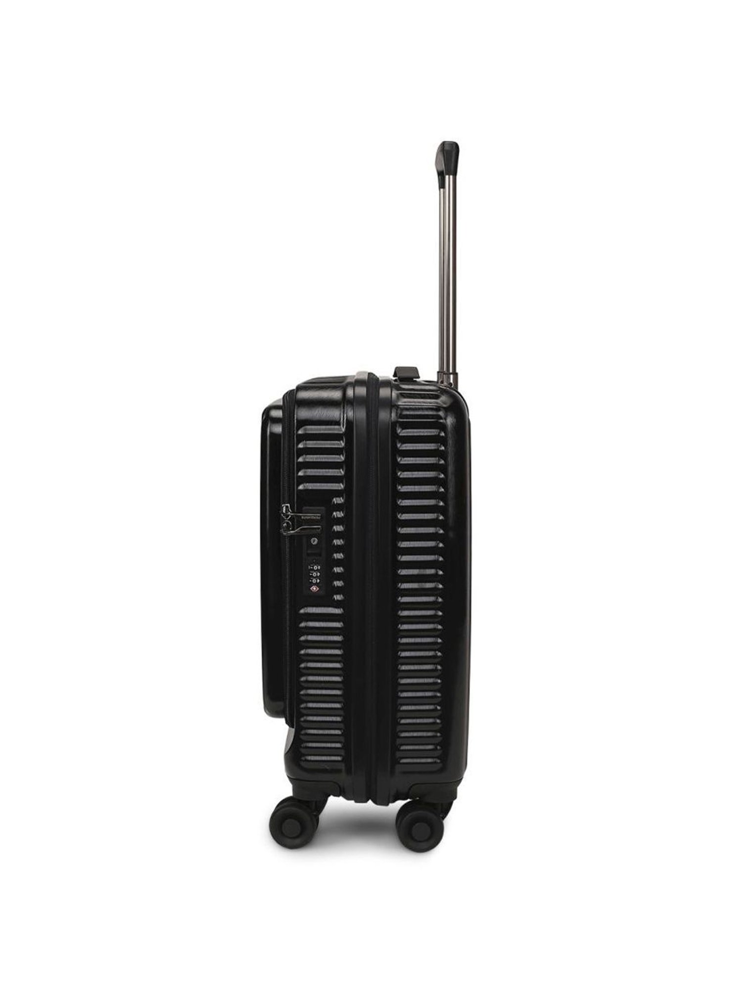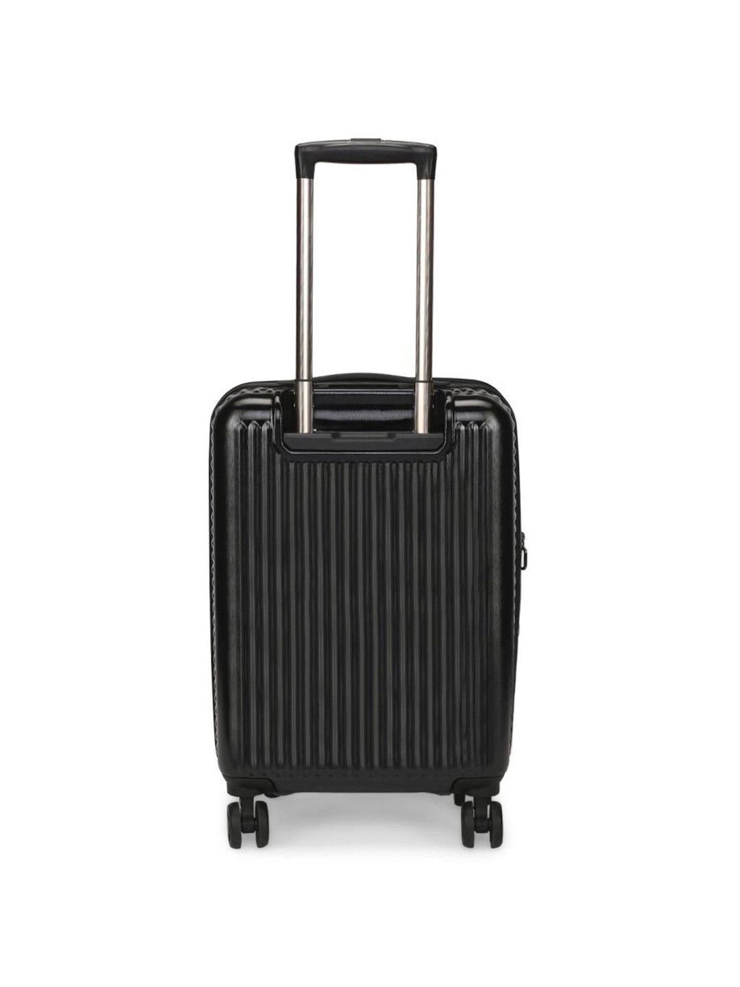 Leave a lasting impression on your peers with this hard cabin trolley bag from PERQUISITE. Adorned with a striped pattern, this black hard cabin trolley bag features spacious compartments to accommodate all essentials in a safe manner. While good quality ABS assures durability, the single handle strap promises carrying comfort. The zip closure will keep your valuable belongings secure.