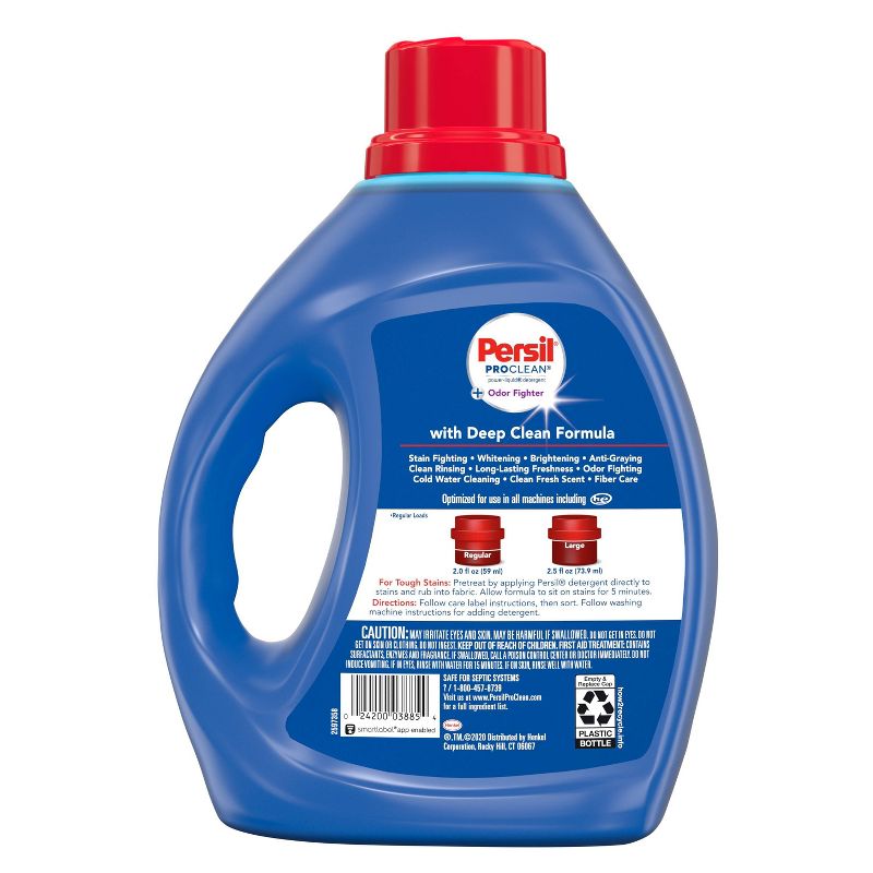 •This package includes one 100-fluid-ounce bottle of Persil ProClean Odor Fighter liquid laundry detergent, enough for 50 loads.