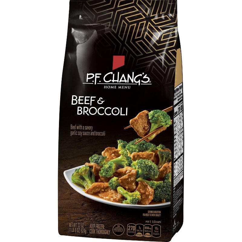 When you can't make it into the restaurant, stay in but eat like you didn't.  When you want a simple meal at home but crave something special, P.F. Chang's Home Menu delivers restaurant-style Asian in minutes. You’ll enjoy tender beef and crisp broccoli drizzled with a savory garlic soy sauce. This 22 Ounce package contains one frozen P.F. Chang's Home Menu Beef with Broccoli Skillet Meal for Two--with 310 calories and zero grams trans fat per serving. Conveniently treat yourself to delicious, authentic Pan Asian flavor in the comfort of your own home; simply prepare over the stove in a skillet and your meal is ready in minutes.