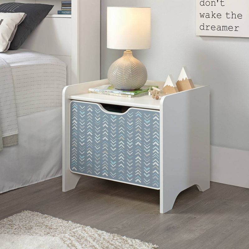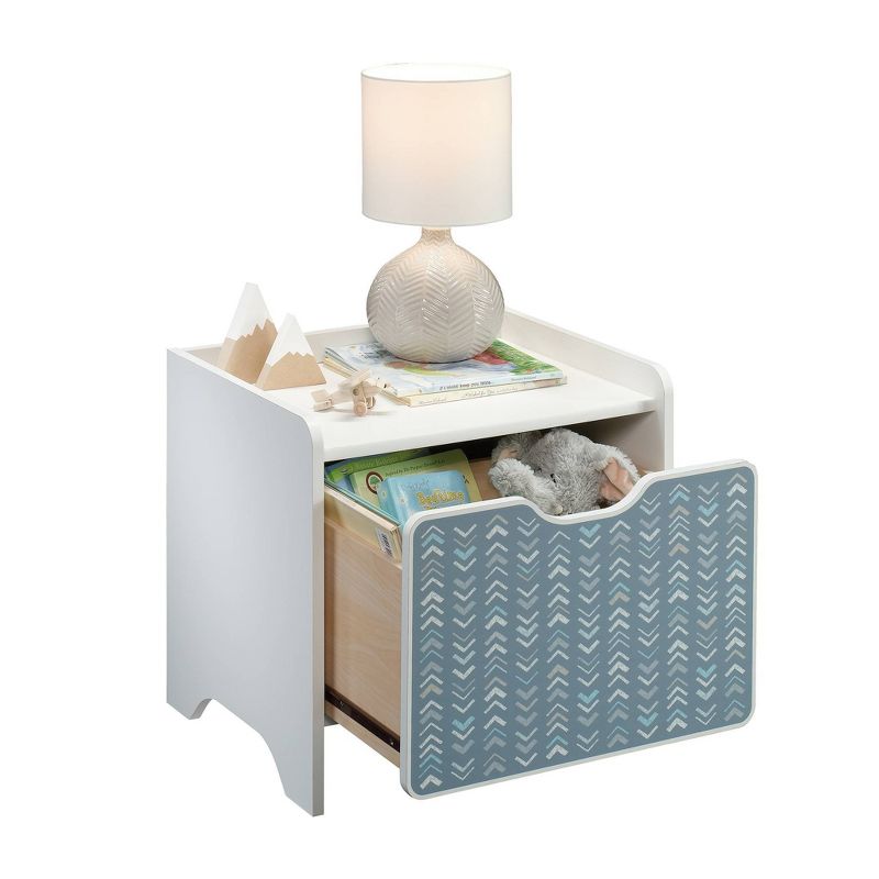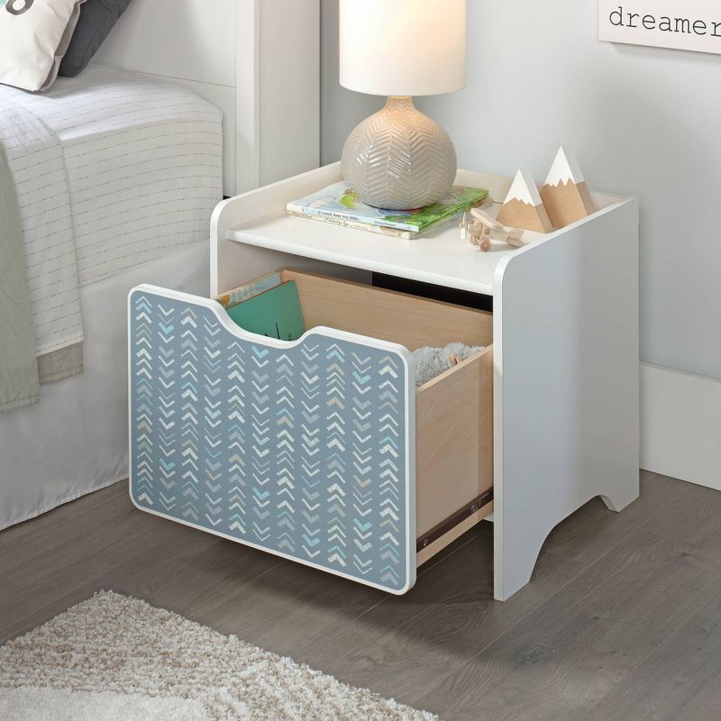 Graphic drawer front features chevron pattern for extra visual pleasure.