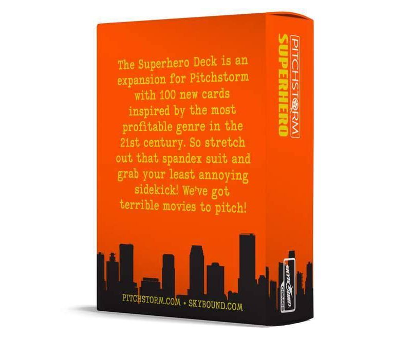 WHAT’S INSIDE THE SUPERHERO DECK. The Superhero Deck is an expansion for Pitchstorm with 100 new cards inspired by the most profitable genre in the 21st century. So stretch out that spandex suit and grab your least annoying sidekick! We've got terrible movies to pitch!