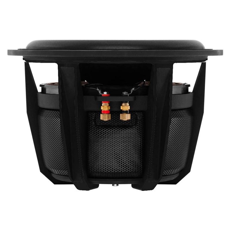 This particular BBD12B car subwoofer model measures 12 inches in diameter and features a dual 4-ohm 2.5-inch copper voice coil, 83 dB sensitivity, and 28 Hz resonant frequency. Meanwhile, this 12-inch subwoofer boasts 2500 watts of max and 1250 watts RMS power handling so you can get more powerful bass out of your system.