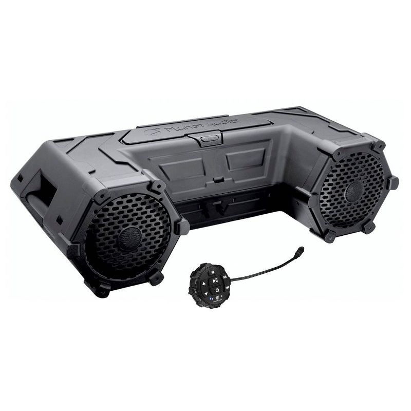 Featuring weatherproof 8 inch poly injection cone speakers and 1.5 inch soft dome tweeters, this speaker and LED light bar hybrid system also boasts 700 watts of peak power and aux inputs for smartphones and MP3 players. Enjoy Bluetooth capability as well as the built in 24 LED light bar and storage compartment with USB charge port.