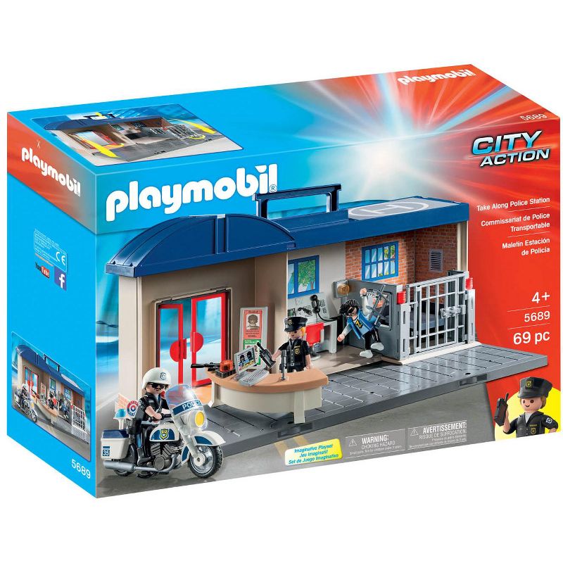 Monitor the situation from the headquarters, answering emergency calls and dispatching the police officer. The officer races to rescue and tracks down criminals on his speedy motorcycle. Once captured, prisoners can be locked away in the station's jail cell. But beware! Some will try to escape through the breakaway window. As an added bonus, this set doubles as a take along case. Set includes three figures, police station, lockable jail cell, motorcycle, station control board, computer, phone, walkie talkie, handcuffs, and additional accessories.