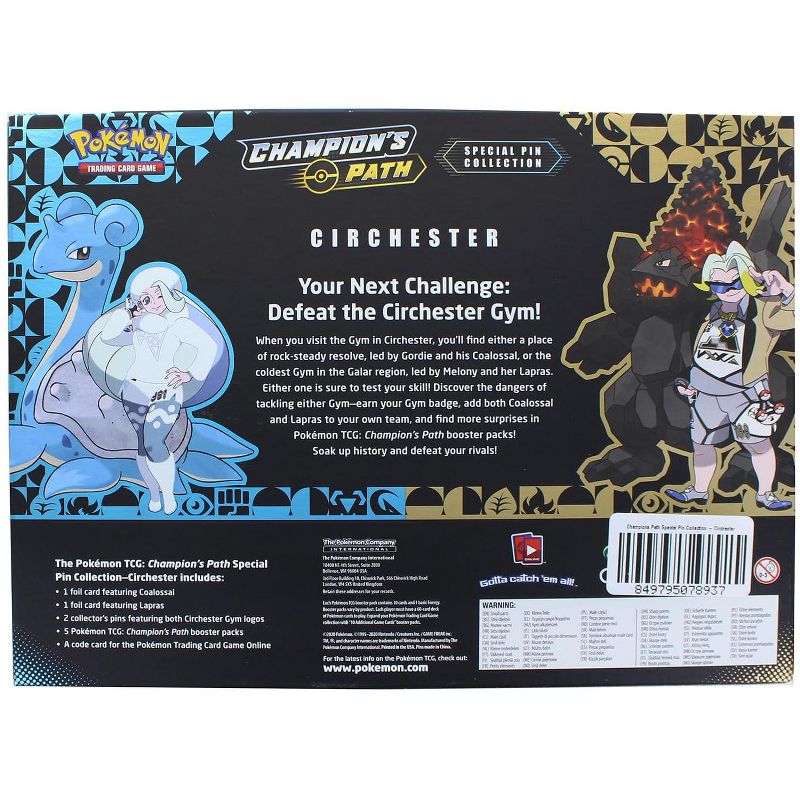 When you visit the Gym in Circhester, you’ll find either a place of rock-steady resolve, led by Gordie and his Coalossal, or the coldest Gym in the Galar region, led by Melony and her Lapras. Either one is sure to test your skill! Discover the dangers of tackling either Gym - earn your Gym badge, add both Coalossal and Lapras to your own team, and find more surprises in Pokémon TCG: Champion’s Path booster packs! Soak up history and defeat your rivals!