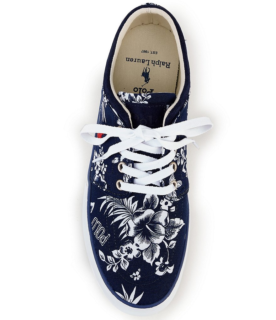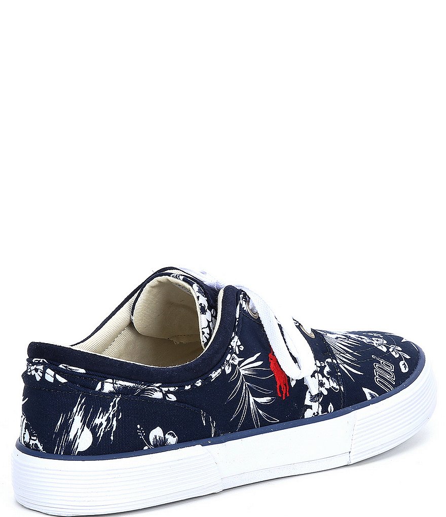 From Polo Ralph Lauren, the Men's Faxon Bear Print Low Sneakers feature: