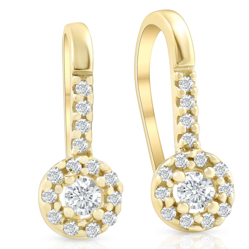 This popular matching pair of pave antique style earrings features round natural diamonds. All diamonds are pave set in 10k yellow gold. Both earrings are secured by French wires. IGI certification is included.