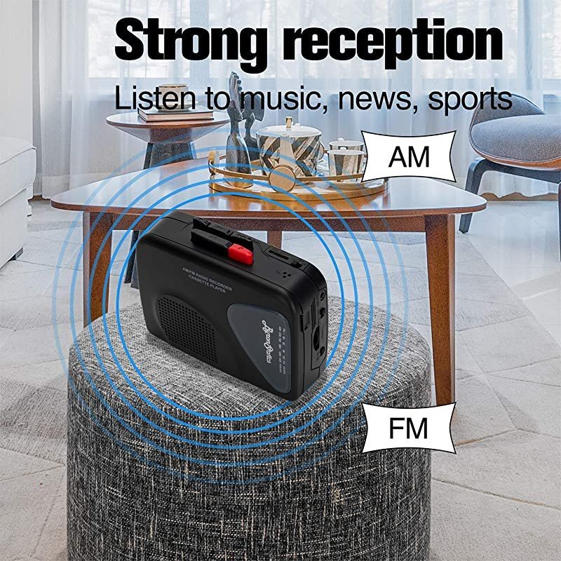 Color: Black Cassette Player FM Am Radio Walkman Portable Cassette Converter Automatic Stop System Protect Cassette Tape Mic Recorder 2 AA Battery or USB Power Supply Belt clip with Headphone Black