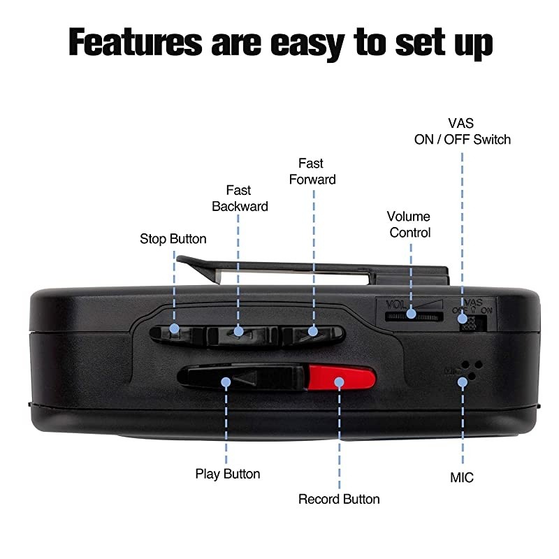 Buy Portable Cassette Players Recorders FM AM Radio Walkman Tape Player Built In Mic External Speakers Manual Record VAS Automatic Stop System 2AA Battery Or USB Power Supply Headphone Black in United States - Cartnear.com