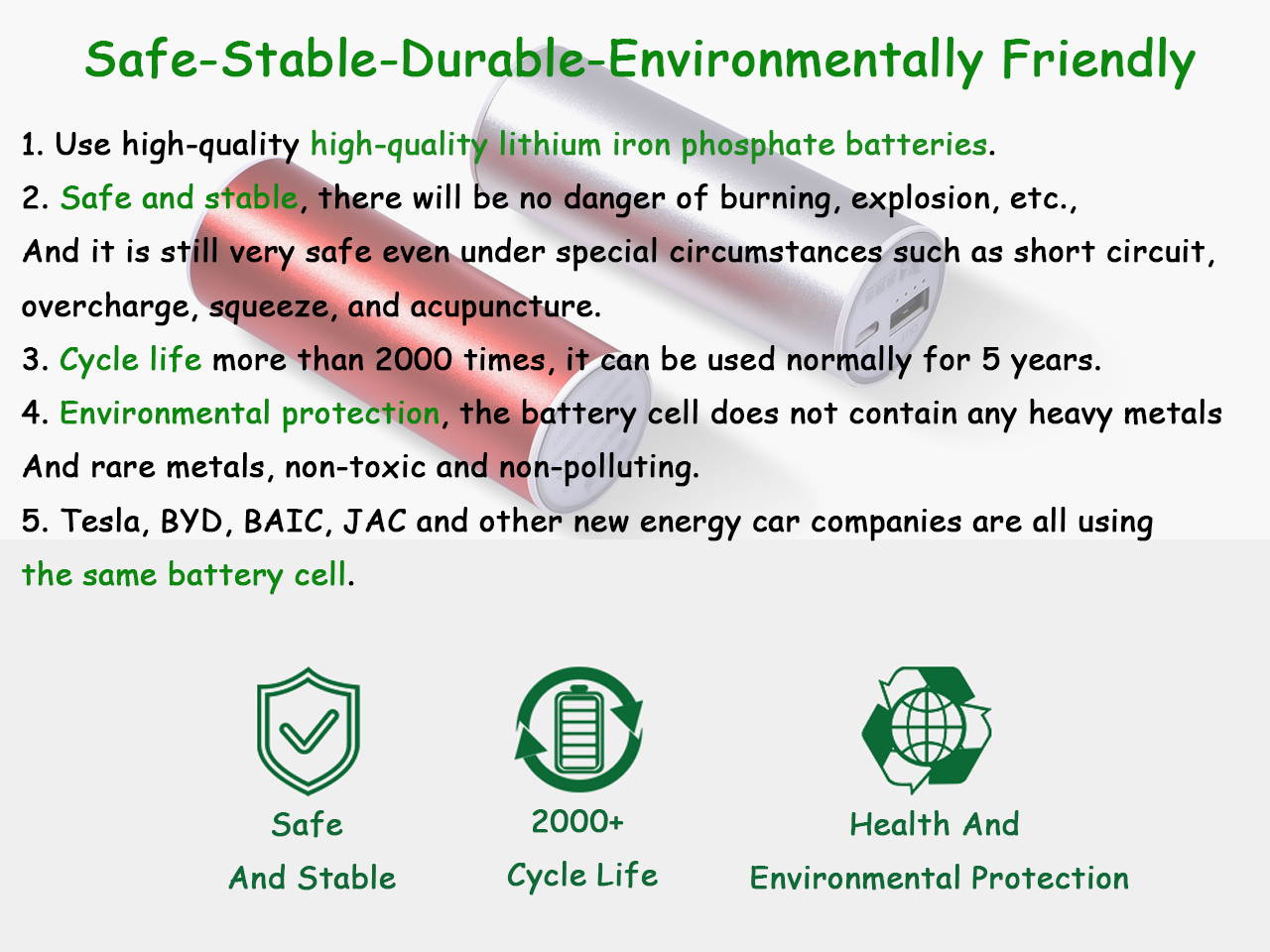 | Chemical | Lithium iron phosphate battery |