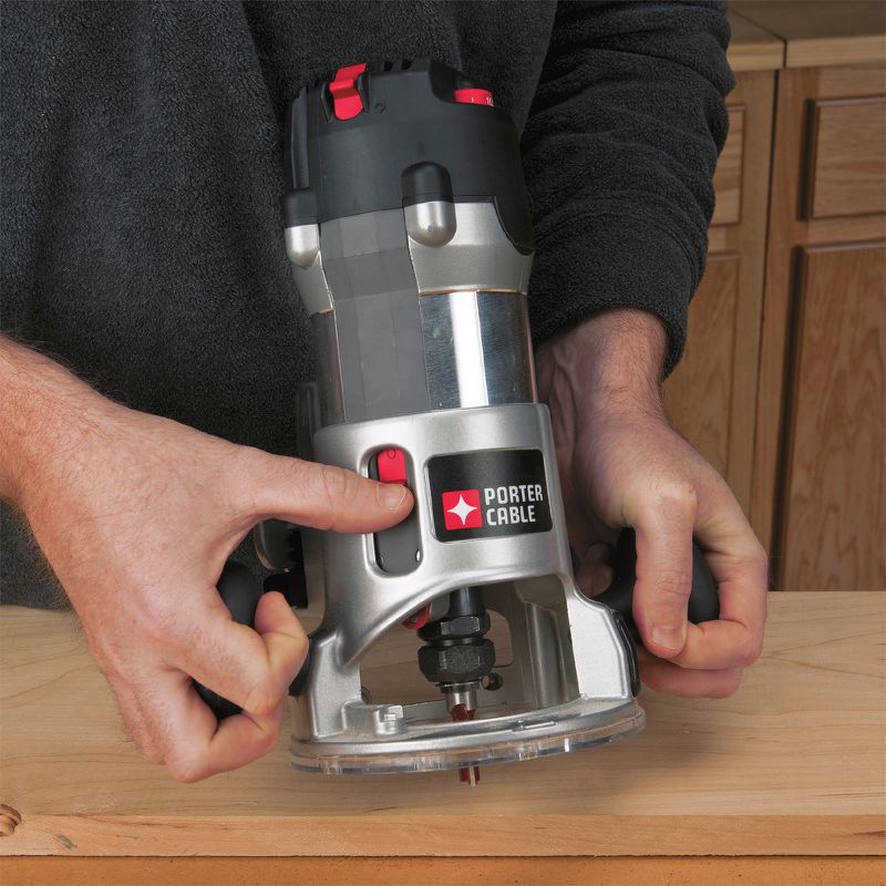Motor transitions quickly between fixed base (included), plunge base (8931), and traditional spiral down bases (690 series)