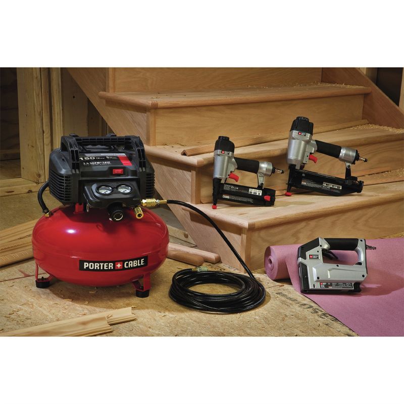 Featuring two of Porter-Cable's most reliable nailers, the PCFP12234R 3-Tool Combo Kit offers reliable power and performance at an outstanding value. Complete with a 6 Gallon Pancake Compressor, complete tasks ranging from molding installation to frame work quickly and easily.