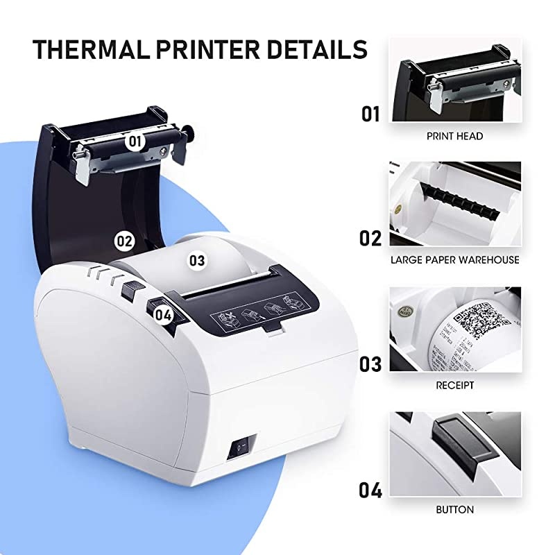 Color: WhiteProduct Features Elegant design in white color. 3 inch thermal receipt printer with auto cutter, suitable for supermarket, retail shop, clothing store, restaurant, Coffee Shop, Beauty Salon etc. You can add your LOGO on every receipt from "Setting Tool" along with Printer Driver. You can turn on/down/off the sound volume by DIP Switch below machine. If you wanna connect the printer via LAN cable, you can set IP address with the guide of User Manual. We also have training video to show you on Youtube. Please search " printer" on Youtube.