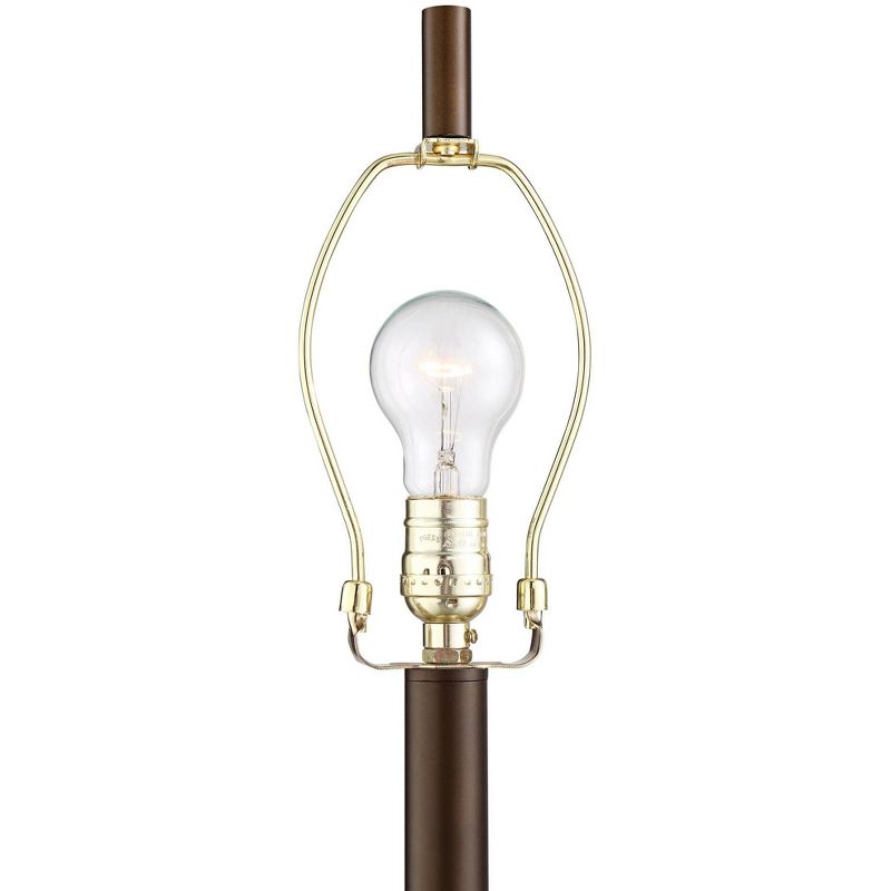 • Oil-rubbed bronze finish. Metal construction. Oatmeal fabric drum shade.