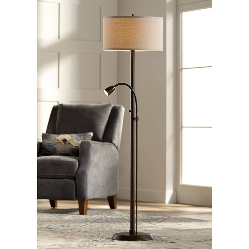 Beautifully rich oil-rubbed bronze adds a warm finish to this tasteful floor lamp with gooseneck reading arm. Crafted by Possini Euro Design®, it blends updated style with a classic transitional look. An adjustable gooseneck arm is perfect for reading or other tasks while the main light can be used for general illumination.