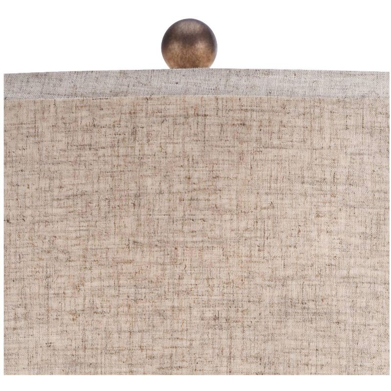 • Tapered fabric drum shade with decorative ball finial.