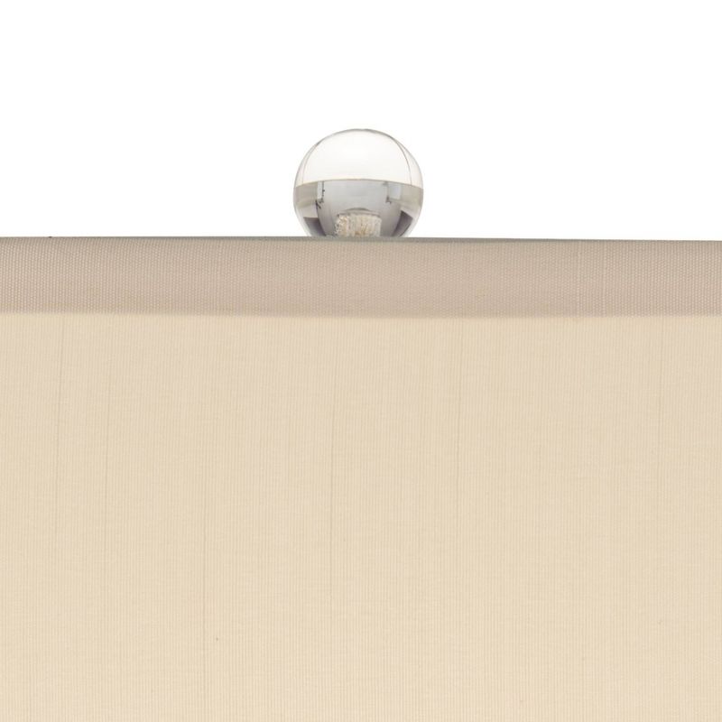 • Off-white oval lamp shade. Round acrylic pedestal base. 7-foot long cord.