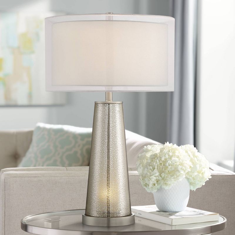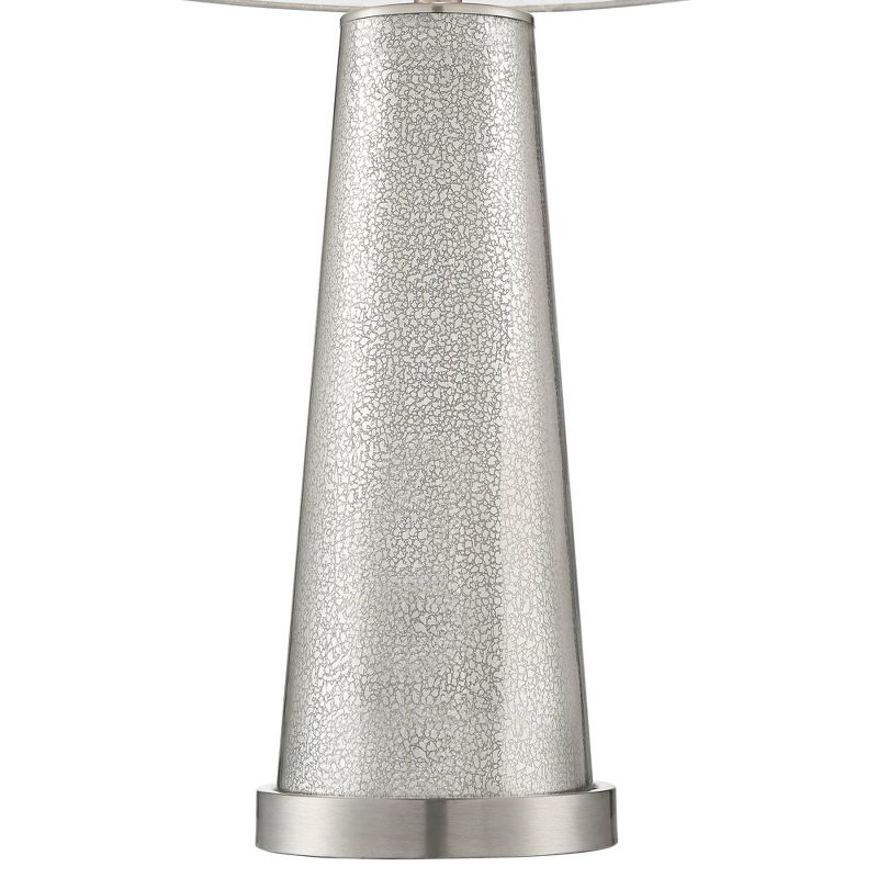 • Mercury glass lamp body. Brushed nickel finish metal accents.