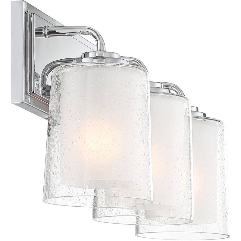 Add a touch of contemporary glam with this stylish vanity light. A sleek chrome finish enhances the luxe look. An outer clear seedy glass and inner frosted glass add dimension and a visual appeal that is sure to please.