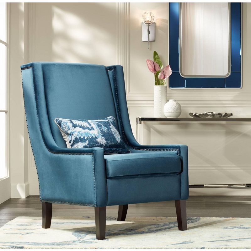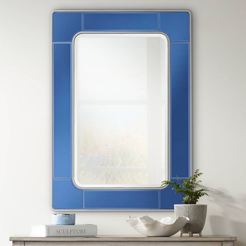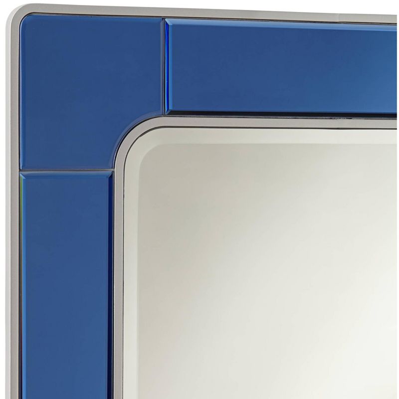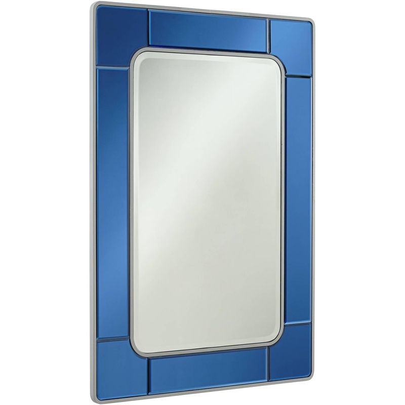 From Possini Euro Design, this rectangular wall mirror is a great addition to a contemporary or transitional style setting. It features an eye-catching blue finish frame made of glass sections, with silver finish backing for a subtle touch of elegance. This versatile mirror can be installed both vertically and horizontally.