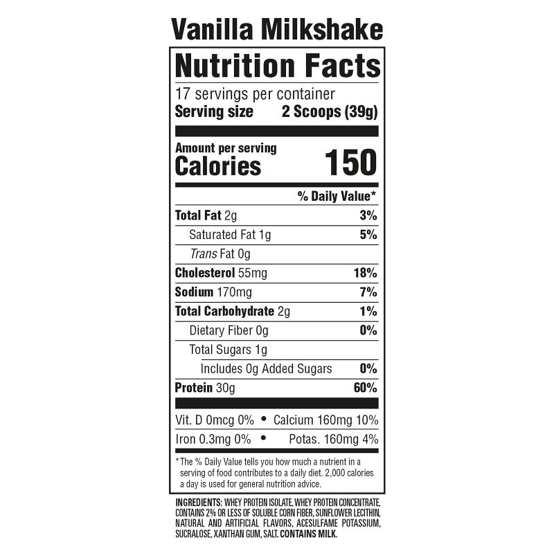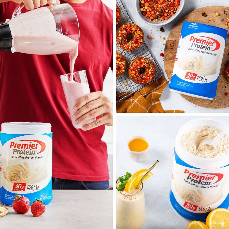 Each serving of Premier Protein Powder contains 30g proteins, 150 calories, and 1g sugar and is an excellent source of calcium and good source of fiber. Made with 100% protein from whey and no artificial colors, sweeteners, or flavors, it is perfect for use any time of the day, from breakfast to afternoon snack to post-exercise fuel. Try it mixed with water or milk, blended into your favorite smoothie recipe, or baked into protein recipes
