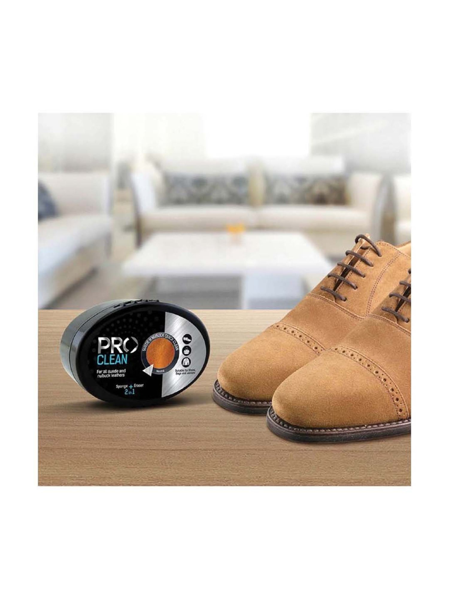 This neutral innovative 2 in 1 sponge and eraser suede shoe cleaner from PRO is for daily care and maintenance of suede and nubuck leathers. The high-quality sponge effectively removes dust and restores the snap of leather. The rubber gum works like an eraser for stubborn stains. It is suitable for all smooth leathers. It brings a natural nap of leather. It has a weight, height and length of 120 grams, 9 cm and 8 cm respectively.