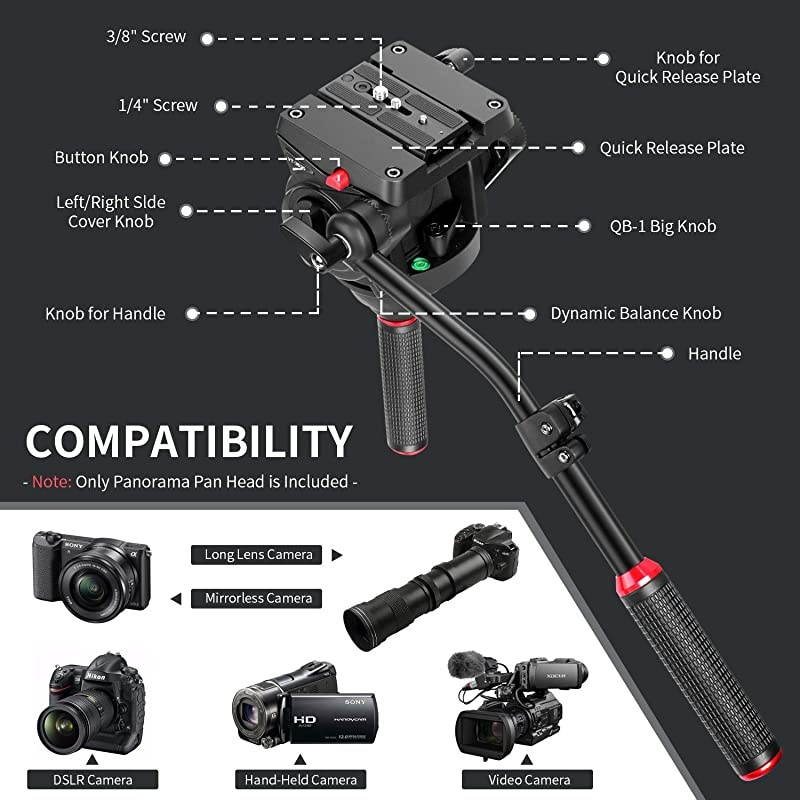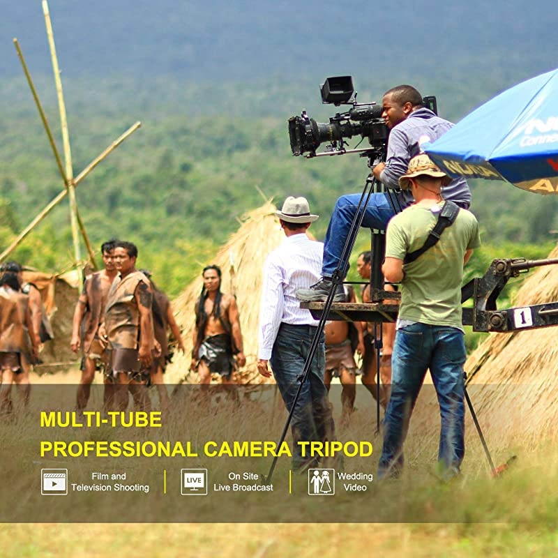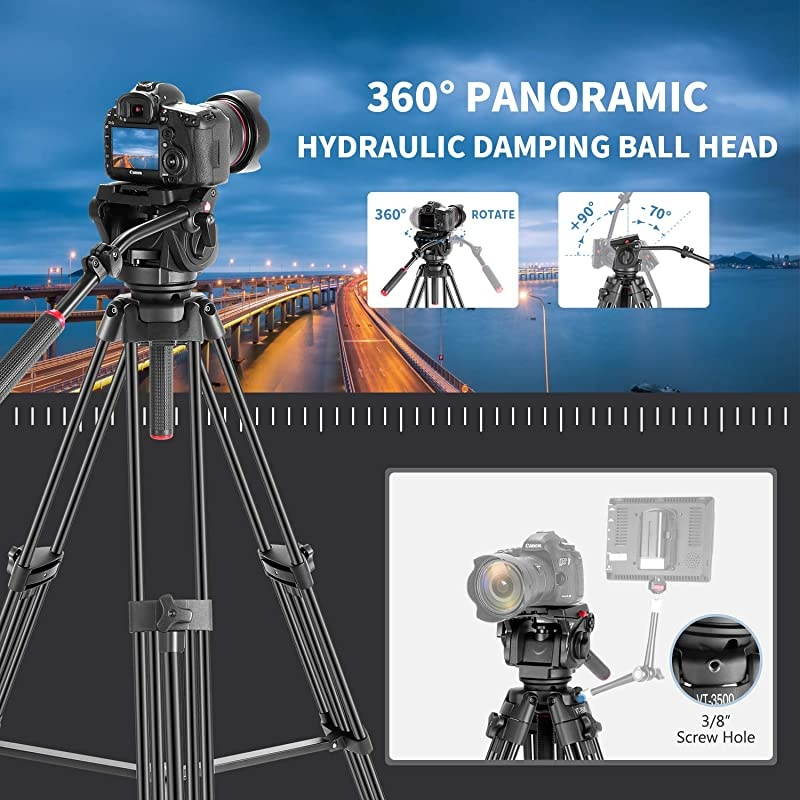 Description: This tripod is suitable for Canon Nikon Sony cameras camcorders, easy to install and disassemble. The bubble level helps you quickly find the balance, ensure the accuracy of the shooting, and achieve the perfect position; 360 degree horizontally and -70 to 90 degree vertically, providing a wide range of shooting horizon. The mid-level spreader helps prevent instability that a ground-level spreader can introduce when working on uneven surfaces.