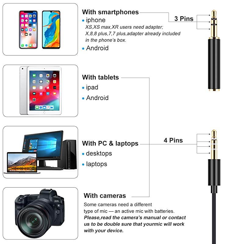 Specification: 4 to 3PIN Adapter makes Mic Could Be Used for PC/MAC/Laptop Electromagnetic Interference Resistant Wire is Built-in 27 Pure Copper This Microphone Could Get a High Quality Audio in Outdoor with Wind Proof Shield for Home/Indoor/Outdoor, You Could Use both Sponge Shield and
