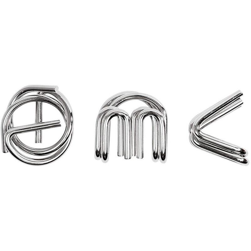 • TEST YOUR SKILLS: Contains 3 interlocking metal wire puzzles of medium difficulty.