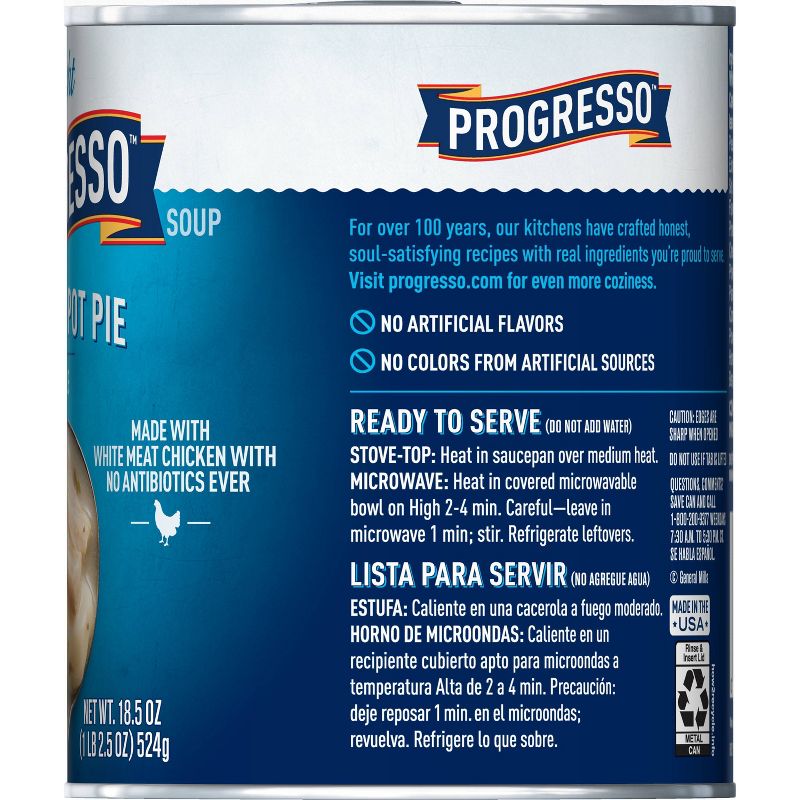 This Progresso Light Chicken Pot Pie Soup is packed with classic flavors and quality ingredients for the whole family to enjoy. This recipe is quick, easy, and convenient to heat up & serve. With no artificial flavors or colors and non- GMO ingredients, you can fully enjoy the goodness of our recipe. Serve this soup in less than five minutes, either on its own or with freshly made bread for a quick and comforting meal.