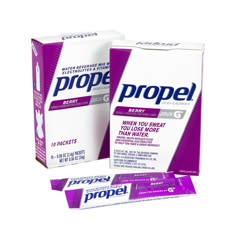 Drink healthy with this Propel Zero Calorie Mix. Propel helps replace fluid and essential electrolytes to help you have a better workout! With natural Berry flavor, these Propel Mixes are not only great tasting, but great for you. With 60 Pouches in total, this 6ct should keep you hydrated workout after workout. Get the most out of your workout with Propel Zero Calorie, bursting with electrolytes and vitamins!