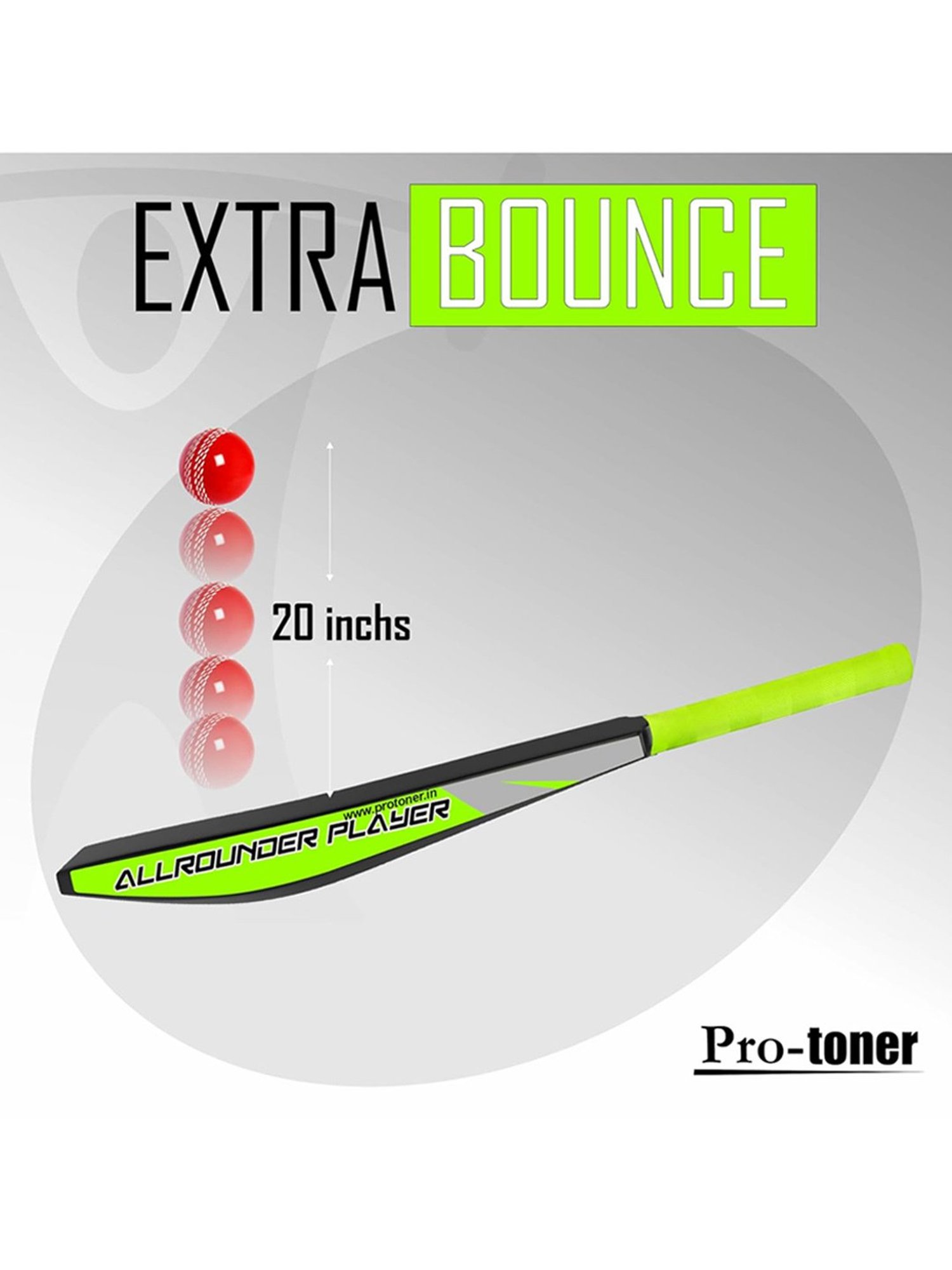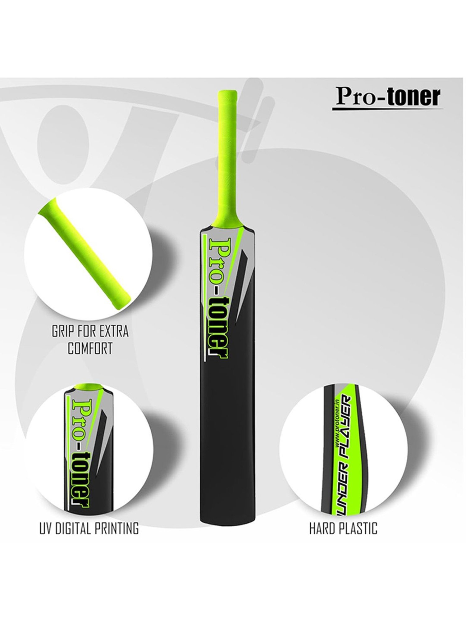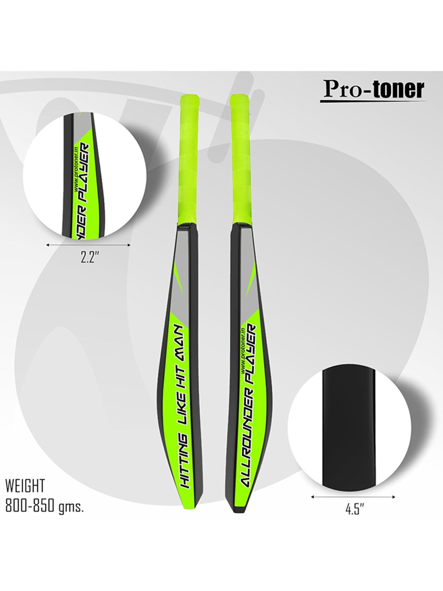 Acquire the power to perform and the strength to succeed with this green cricket bat from Protoner. It has a weight of 850 gms, a height of 5.5 cm, a length of 65 cm, a width of 11.4 cm and an overall size of 65 x 11.4 x 5.6. It is made using plastic. It has a one-month warranty against manufacturing defects.
