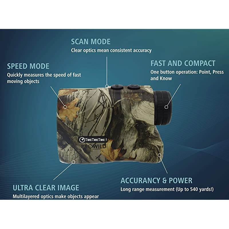 ***** **********Best Quality Guranteed. *****HUNTING LASER RANGEFINDER; Tired of cheap rangefinders with short ranges of measurement? Our PROWILD Laser Rangefinder is a premium product, measuring up to 540 yards with continuous scan mode, advanced speed technology, and a durable, water resistant body! *****SPEED, SCAN and HUNT TECHNOLOGY; Provides fast measurement with +/- 1 yard accuracy. *****THROUGH THE LENS DISPLAY; Premium, ultra clear, multilayered optics with easy read, through the lens display with distance and battery meter, and continuous measurement mode for fast, convenient measurements! *****LIGHTWEIGHT AND PORTABLE; (Eye-safe rangefinder Class 1 laser with < 0.5 mW average power output) measures just 104 x 72 x 41 mm and weighing just 185g, with a water and dust resistant, durable body, perfect for carrying while hunting, or for measuring and surveying without extra weight or bulk.