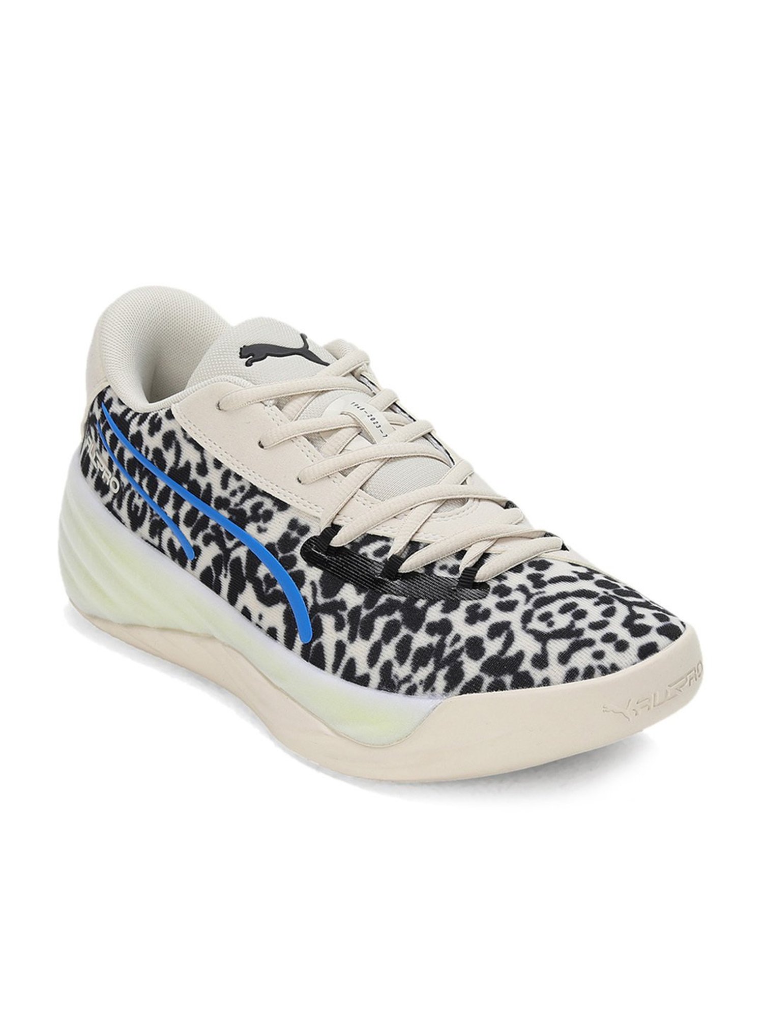 Hit the court like a first-team all-pro in these basketball shoes from Puma. The engineered textile upper guarantees max breathability while running up and down the court, while the Nitrogen-injected midsole provides the responsiveness you need when you're swishing and dishing just like Clyde. The advanced Nitro foam is designed to provide superior responsiveness and cushioning in a lightweight package. Furthermore, it features a rubber outsole.