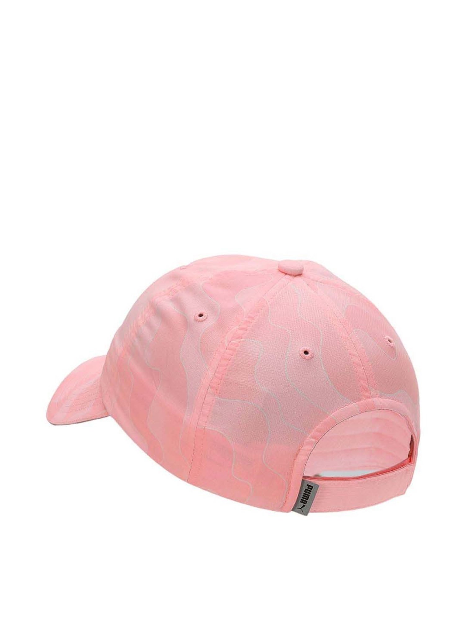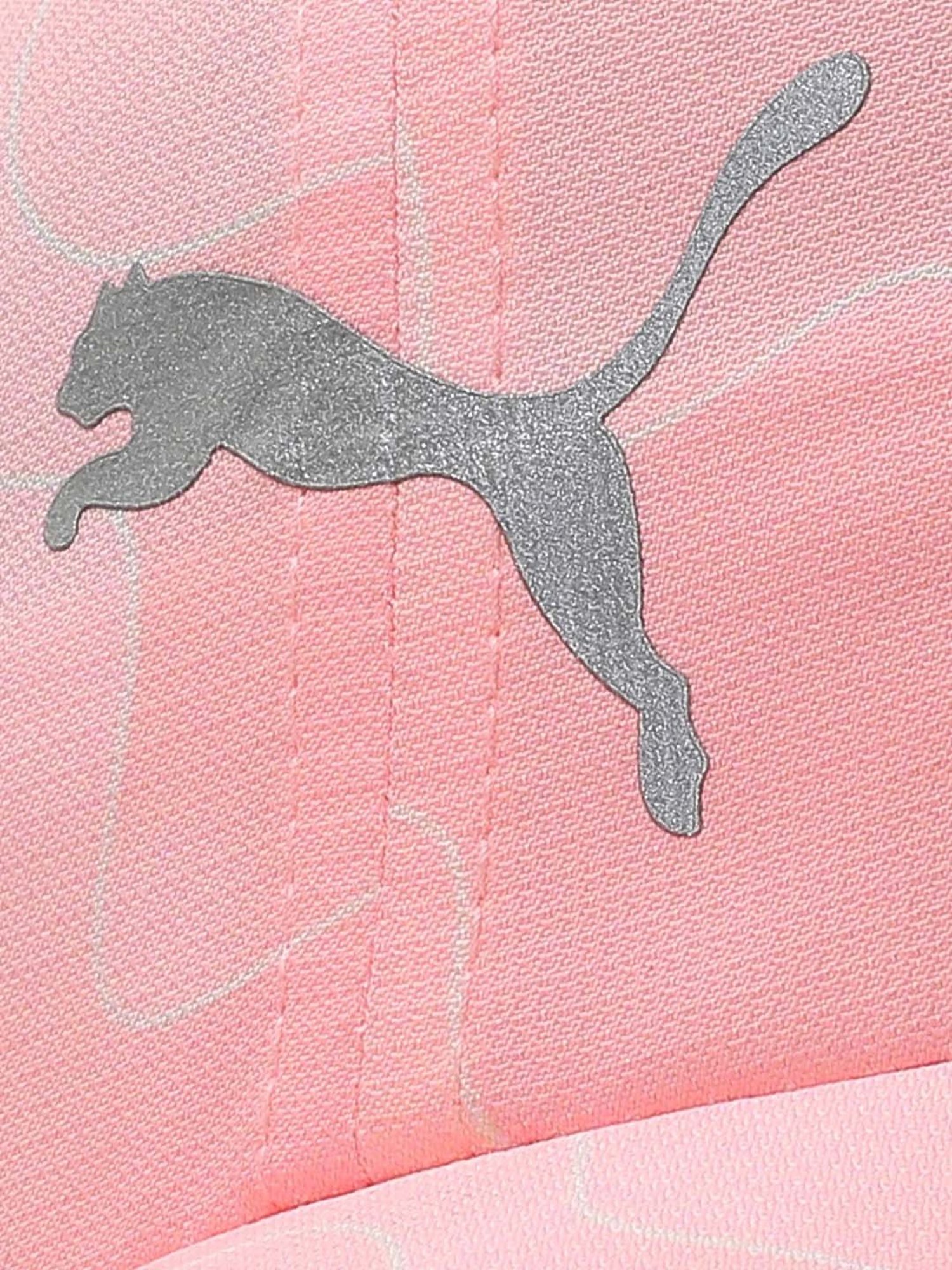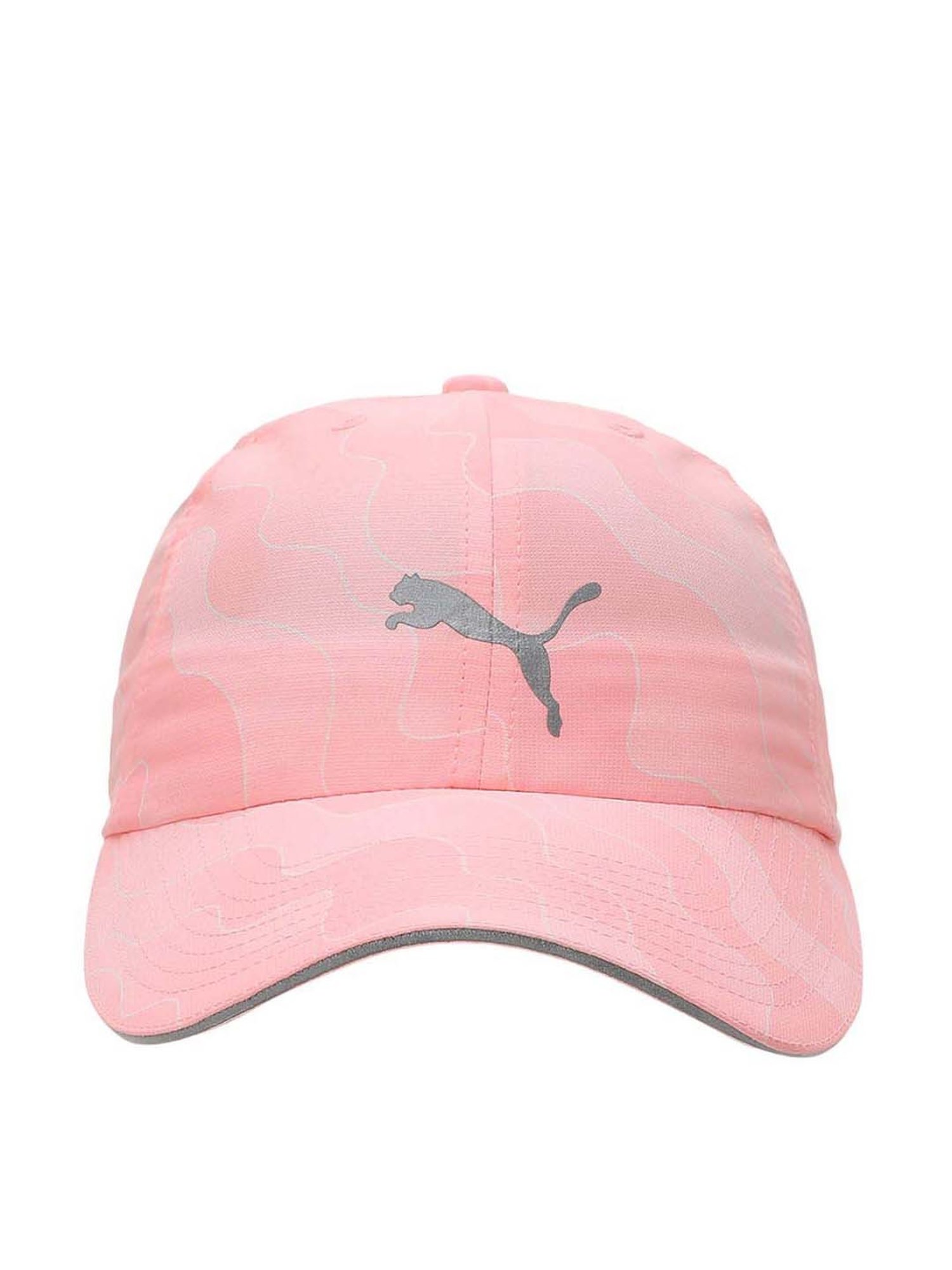 This highly functional printed run cap for men from Puma has a moisture-wicking eyelet mesh sweatband and is designed to dry quickly. So, when you're ready for your next run or next workout, so is your cap. It has a curved visor, embroidered eyelets, hook-and-loop fabric adjuster with plastic buckle and reflective heat transfer Puma cat logo on the front. It is made using polyester and has a pink hue.