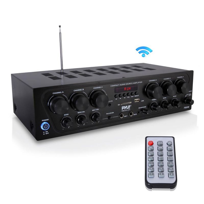 • Wireless Bluetooth 6-channel amplifier provides at-home or office entertainment for home theater, surround sound, karaoke, and more