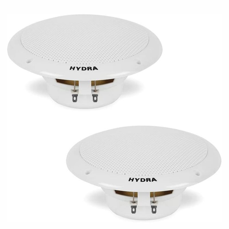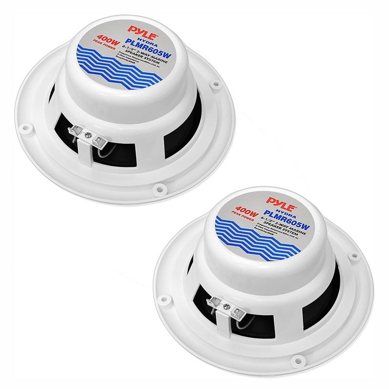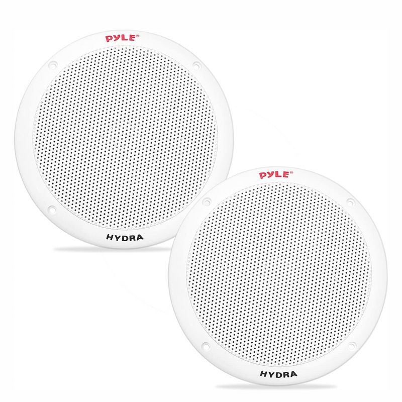 Turn up the volume with this pair of 2-Pack Pyle PLMR605W 6.50 Inch Waterproof 2 Way Full Range Marine Speaker System. The hydra marine speaker system is what you need to listen to high-quality audio on your boat, deck, poolside, or outdoors.