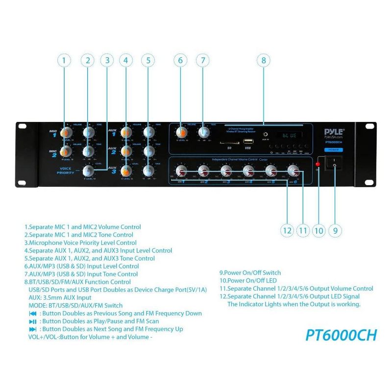 Crank up the tunes and jam out with this Pyle PT6000CH Bluetooth 6-Channel Amplifier Stereo Receiver System.
