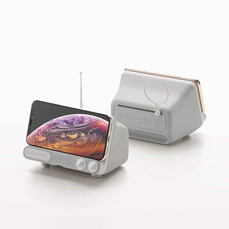 **********[Fast Wireless Charging] Give yourself a power boost with this 10W fast wireless charger certified Qi from WPC. You can now charge comfortably and beautifully. *****[Wit Design] Camin Red, Dim Grey or Mono White. The three refined colors mixed to an elegant retro design create a one of a kind wireless charger. Its reminiscence design and proven technology will make your smartphone even more special. *****[Retro but Smart] With our smart chipset, peacefully let your phone charge. The protection features, such as overcharging and overheating prevention or foreign substance detection, keep your phone safe from damage.